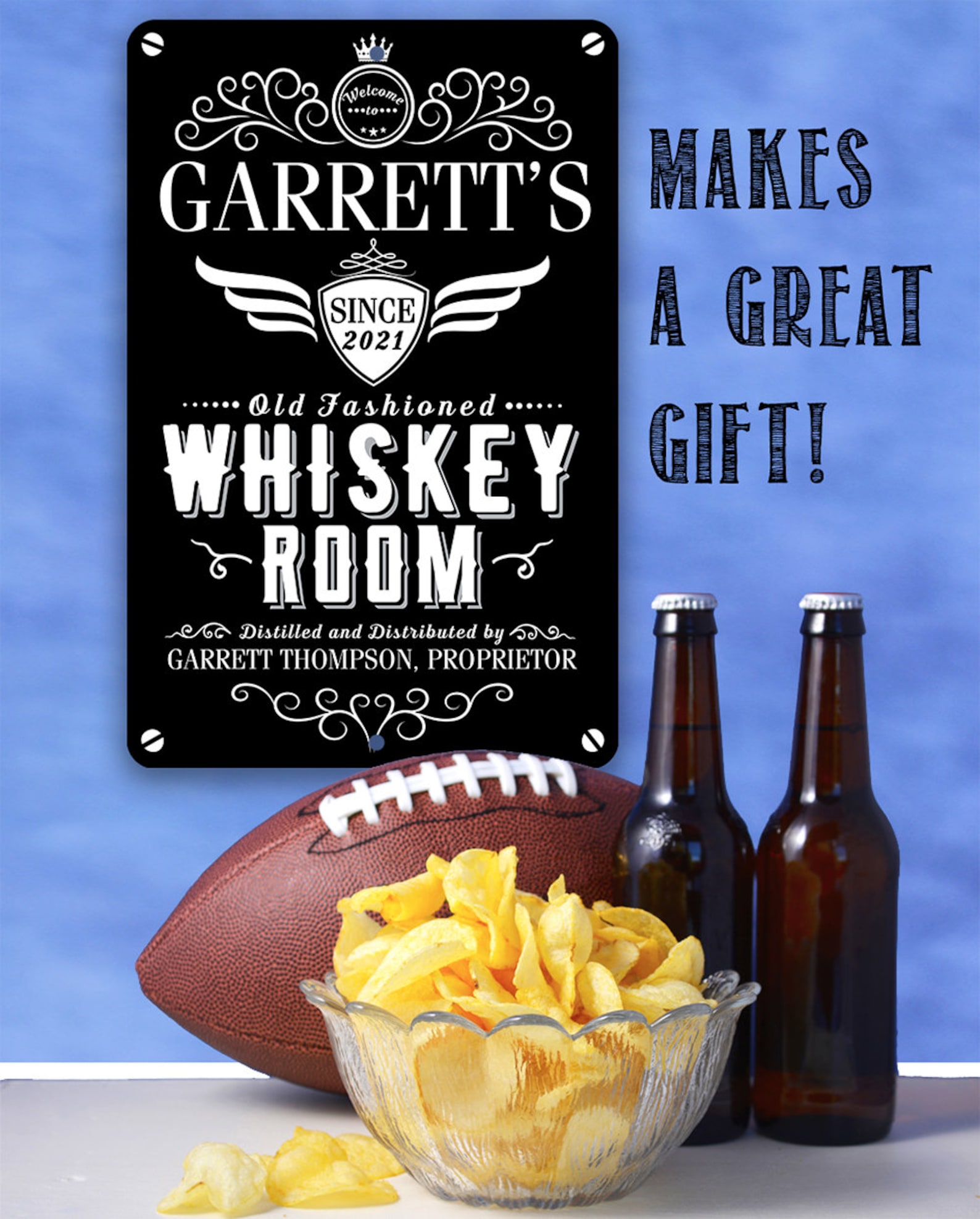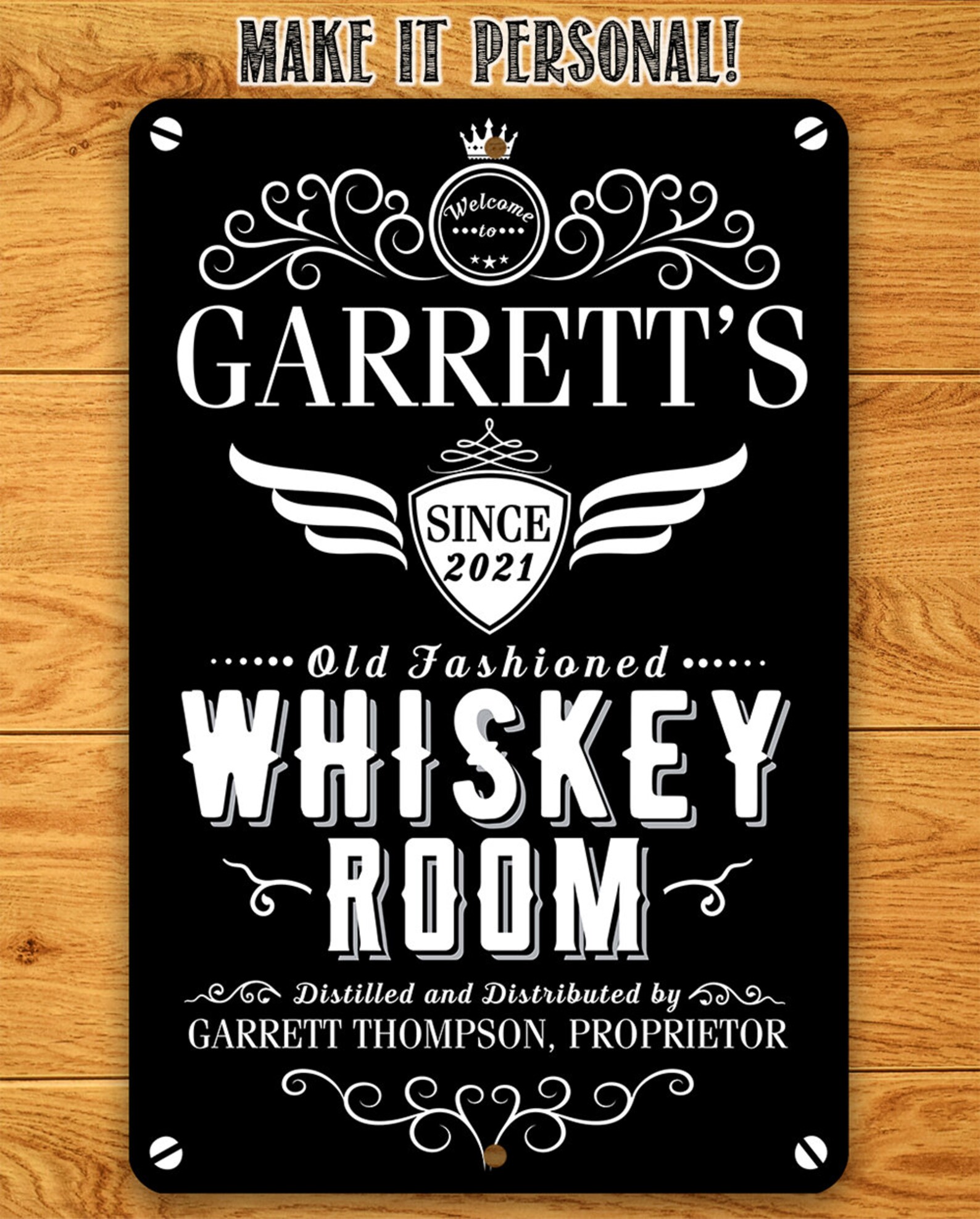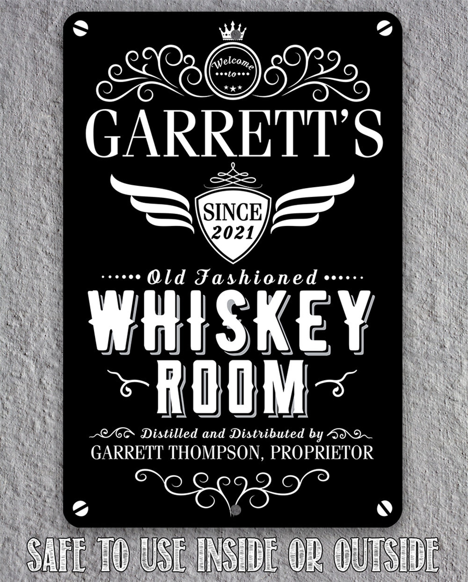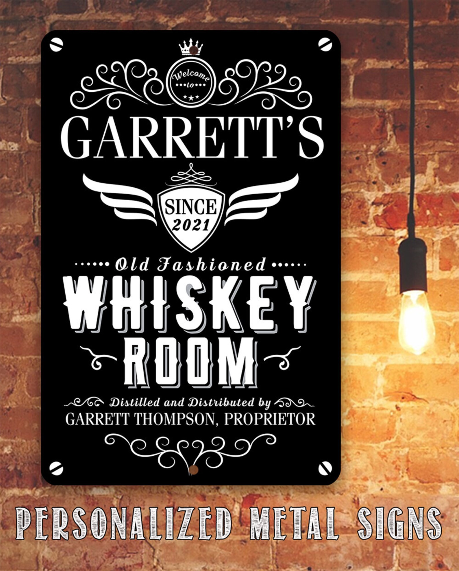 Tin – Personalized Whiskey Room Metal Sign – 8" x 12" or 12" x 18" Use Indoor/Outdoor – Bar, Pub, and Mancave Decor