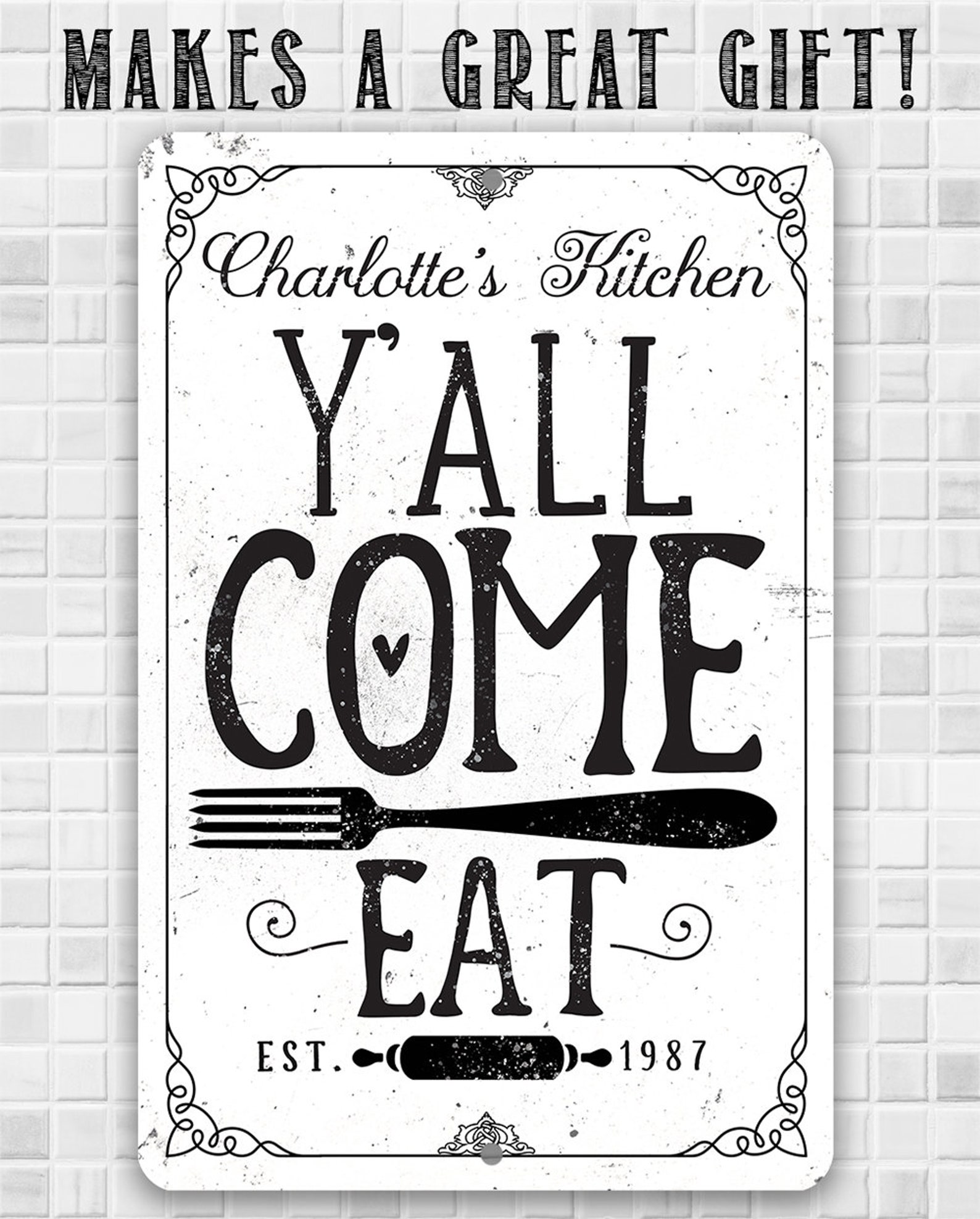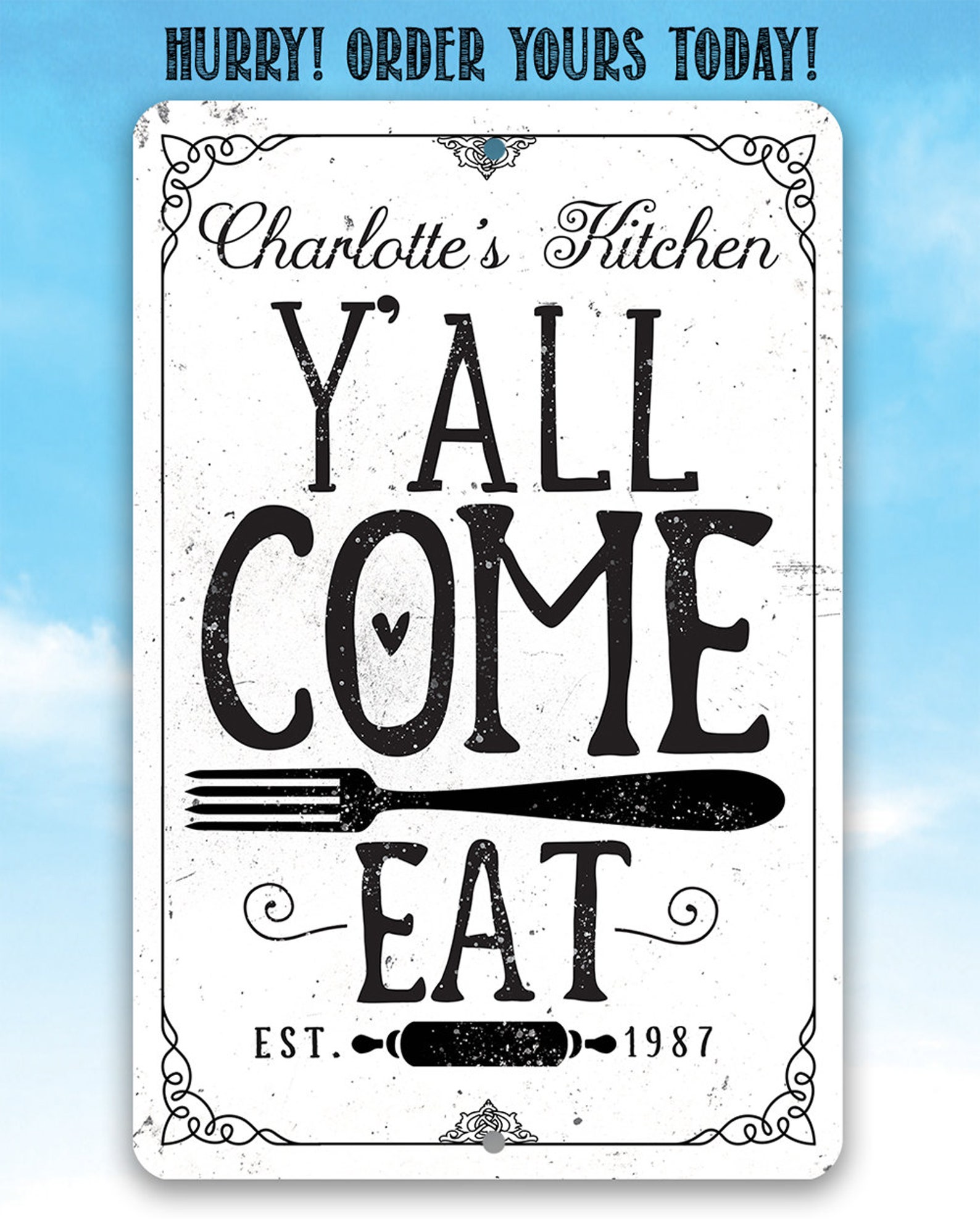 Personalized Y9;all Come Eat Kitchen – 8" x 12" or 12" x 18" Aluminum Tin Awesome Metal Poster