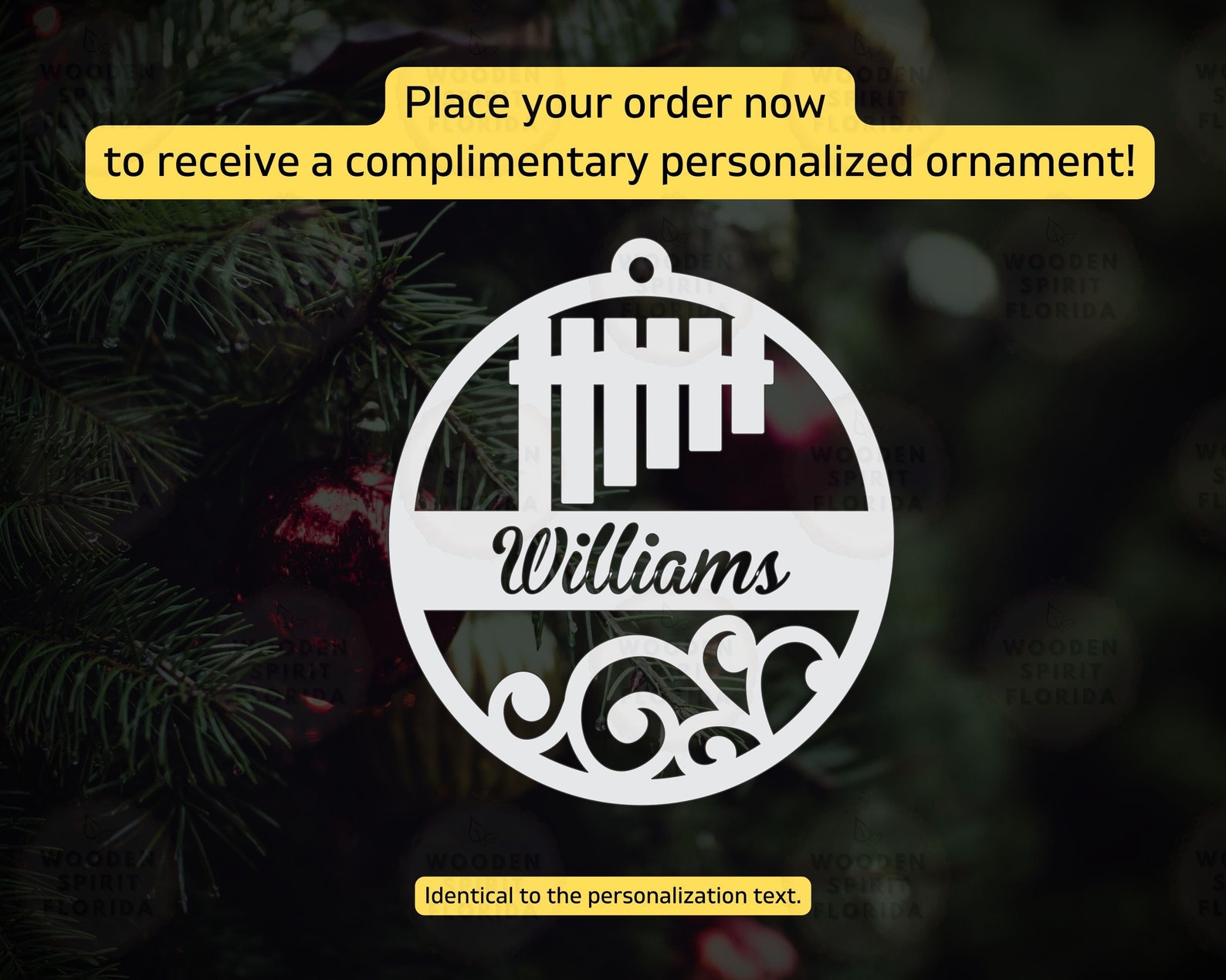 Complement your purchase with a FREE ornament, tailored to match the personalized text of your order.