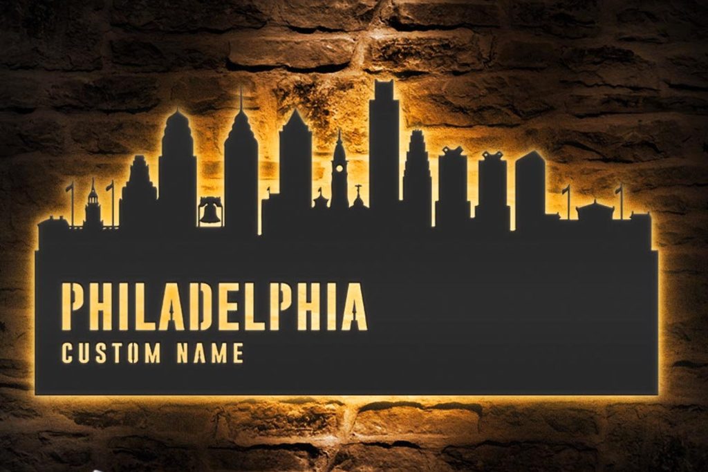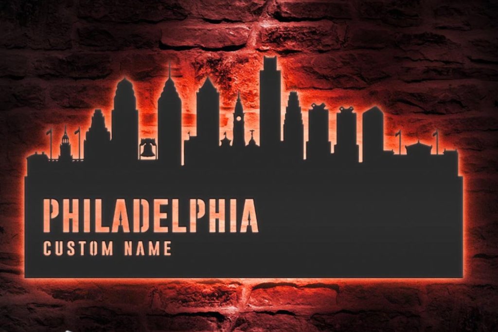 Be the first to review “Philadelphia Skyline Metal Sign, Custom Name, Home Decor”