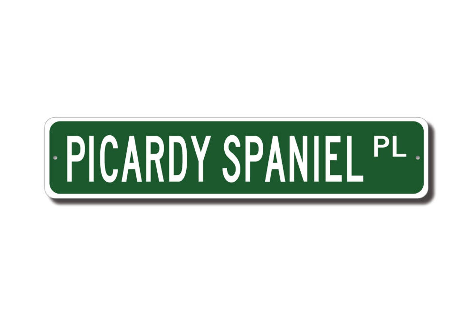 Picardy Spaniel lovers check out this awesome street sign! This will make the perfect piece for any Picardy Spaniel lover or Picardy Spaniel cave. Made of premium aluminum it will stand the test of time. This sign will look great in any room, garage, barn or office! Get this sign for your favorite friend that loves a Picardy Spaniel !