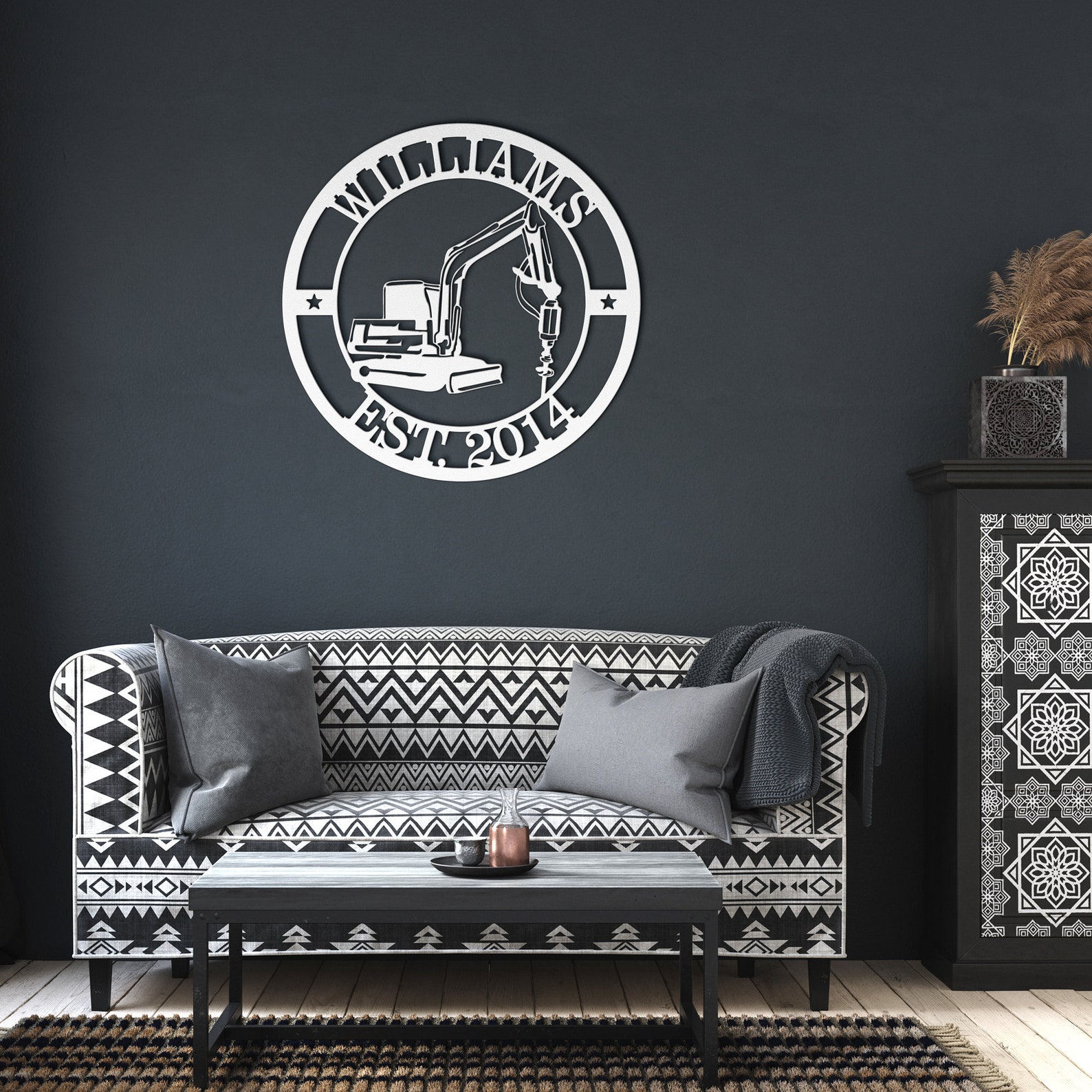 Upgrade your living space with our meticulously crafted metal sign, designed to bring a touch of elegance both indoors and out. Crafted from durable 18 gauge steel, each sign is powder-coated in your choice from 5 stunning colors: Black, Red, White, Copper, or Silver. With 6 size options ranging from 12" to 36", you can select the perfect fit based on the sign9;s maximum height or width, relative to its design orientation. Built to endure, our signs resist the elements, ensuring lasting beauty and charm for years to come. Orders will be dispatched from our production facility in Sioux Falls, South Dakota. During peak demand times, such as Christmas, Fathers Day, Mothers Day we may ship orders from Turkey to ensure timely delivery.