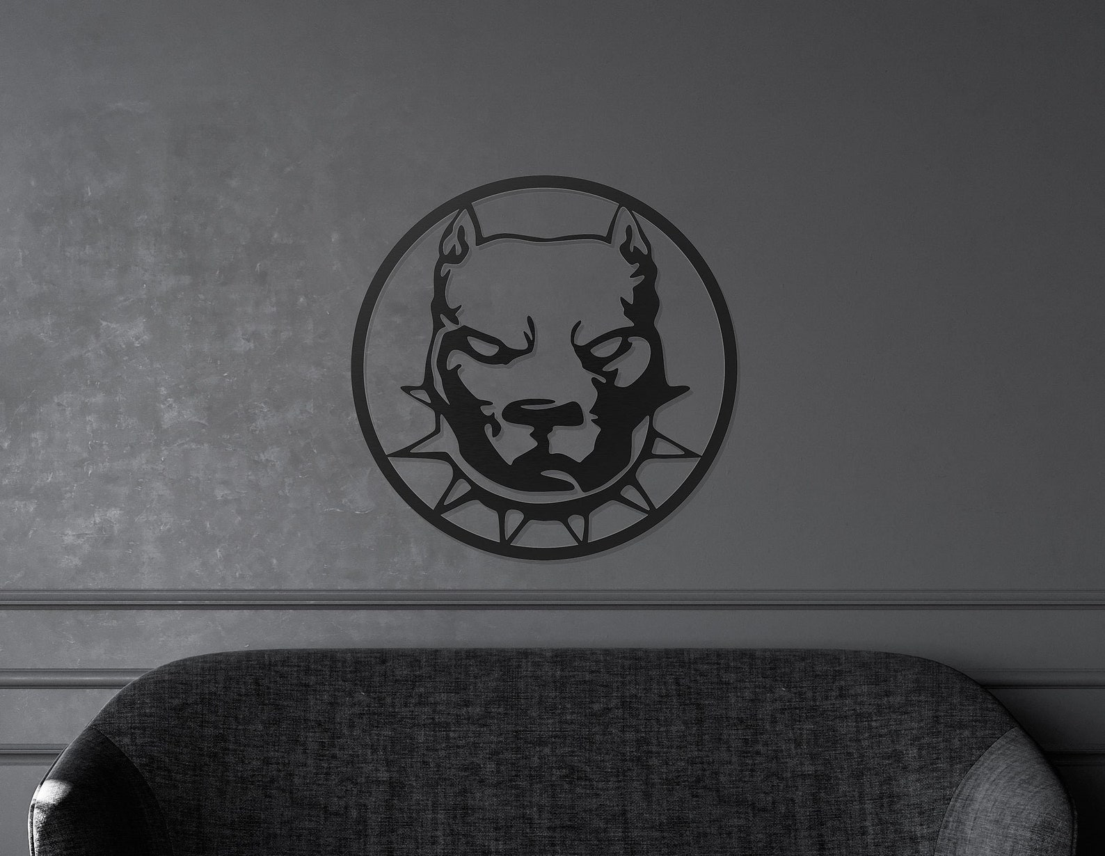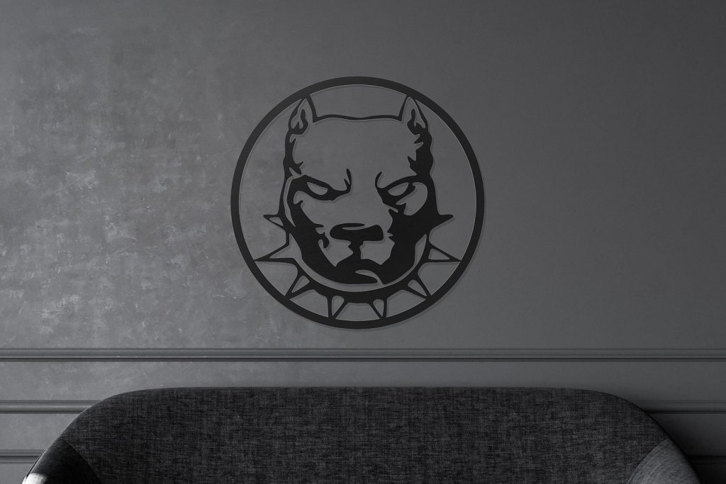 *** Laser-cut large Pitbull dog metal wall art comes as one piece with a special sturdy box. It is ready to hang, modern and solid.