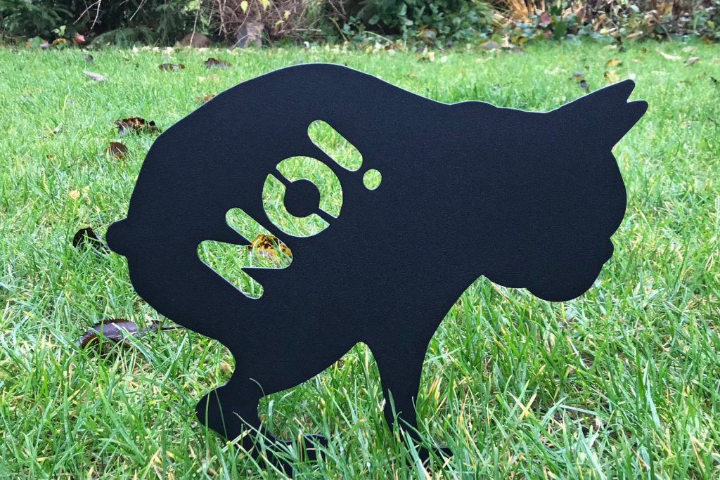 This pooping dog will not leave behind a surprise in your garden, it may scare away foreign dogs. You do not have to dig in the grass of the plaque "clean up your dog", Toto will be happy to replace them! The dog can live with you screwed to the fence or pushed into the lawn. Dog is made of 1.5 mm thick stainless steel and painted with semi-matt powder black, what guarantees longevity. Handles for insertion or screwing are provided with holes (stainless steel extension and screws incl). Toto is a small dog, resistant to weather conditions, that will beautify your garden and play a role of the scarecrow for unwanted visitors, or can also be a great gift for your friends. No poop sign.