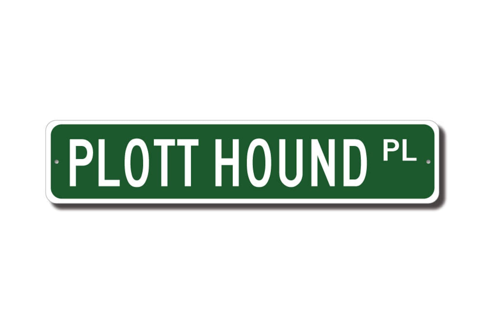 Plott Hound lovers check out this awesome street sign! This will make the perfect piece for any Plott Hound lover or Plott Hound cave. Made of premium aluminum it will stand the test of time. This sign will look great in any room, garage, barn or office! Get this sign for your favorite friend that loves a Plott Hound !