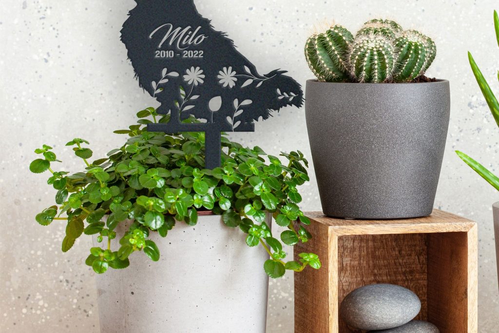 Do you have a beloved pet that you want to commemorate forever? Our personalized pet memorial metal garden stake offers the perfect way to do just that. This beautiful, rustic and hand-made garden stake will be a unique feature in your outdoor space while also honoring your lost pet.