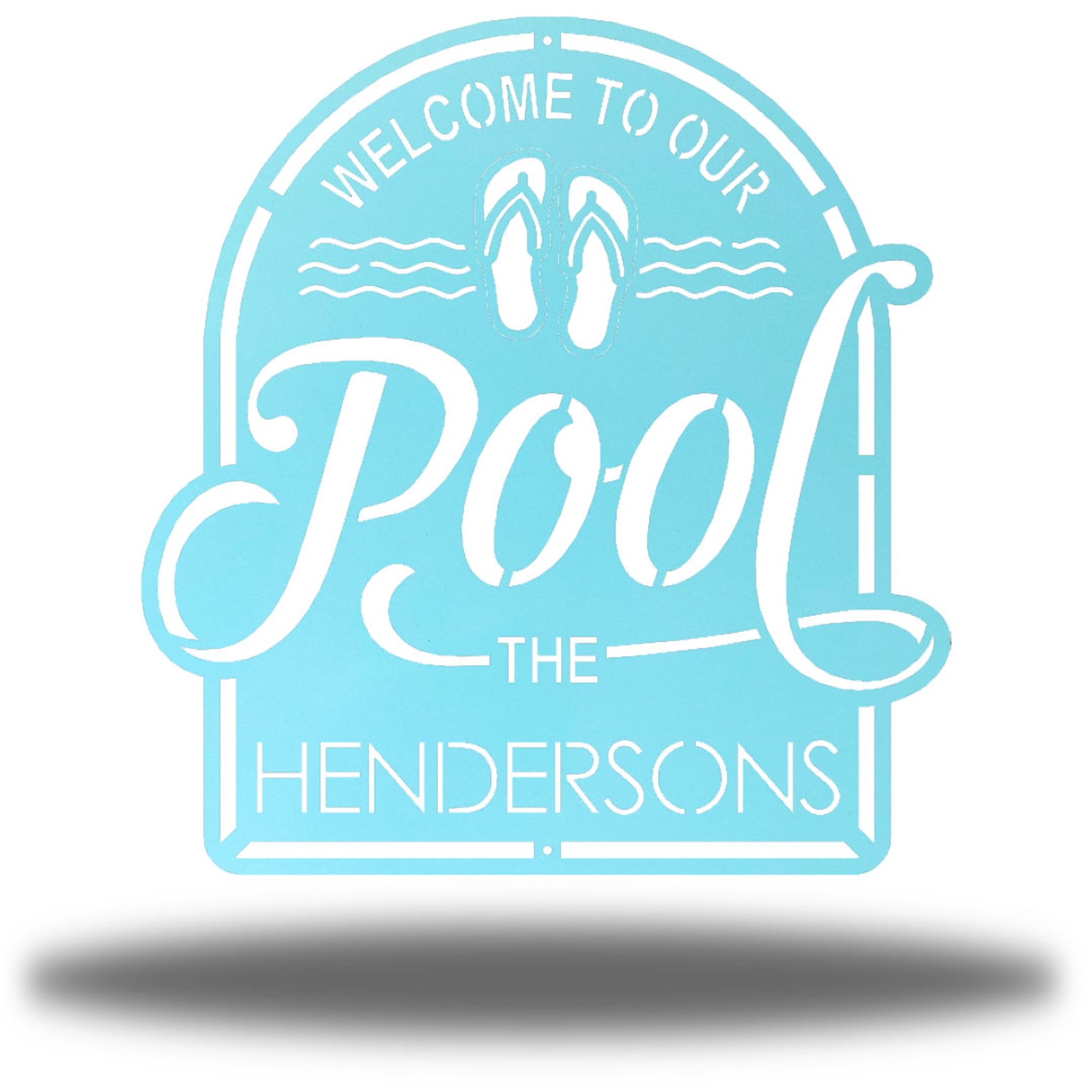 This Welcome to Our Pool Monogram Sign Metal Sign is constructed of 18 gauge steel on a Fiber Laser and then Powder Coated to give this item a one of a kind, unique finish.