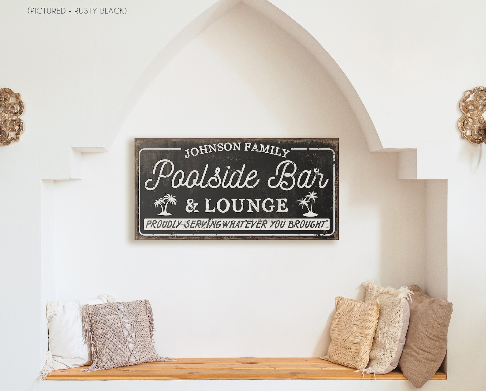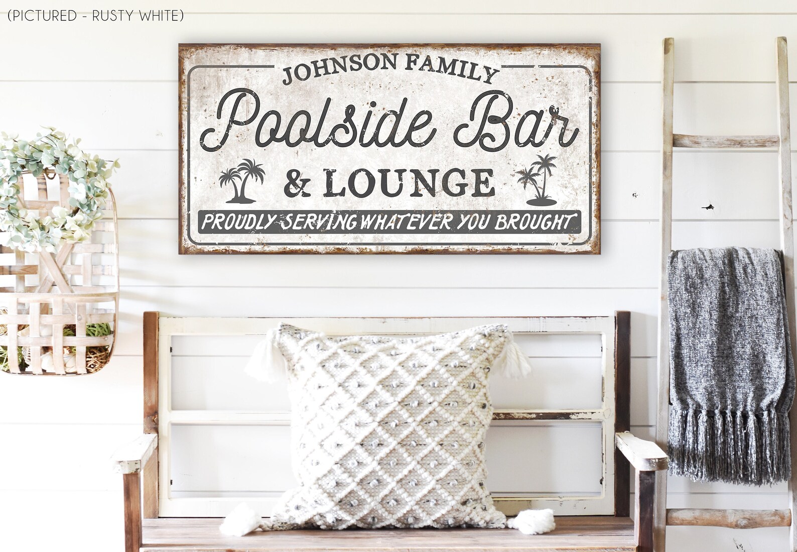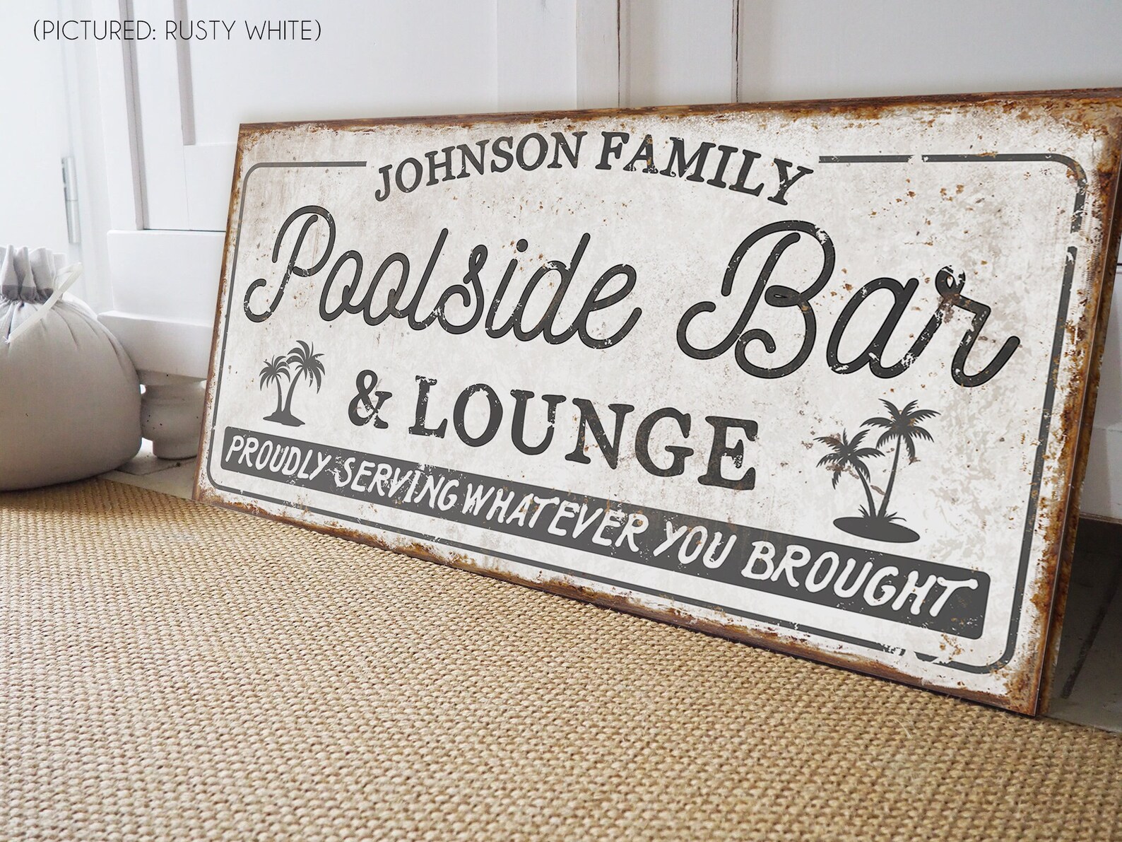 Custom Poolside Bartand Lounge SigntFamily Name WalltArt Tropical PooltSign PoolhousetDecor Canvas WoodtMetal Outdoor PatiotSign Outsidetno diving lifeguardton duty swimmingtgifts for dad momtnautical beach housetocean palm trees