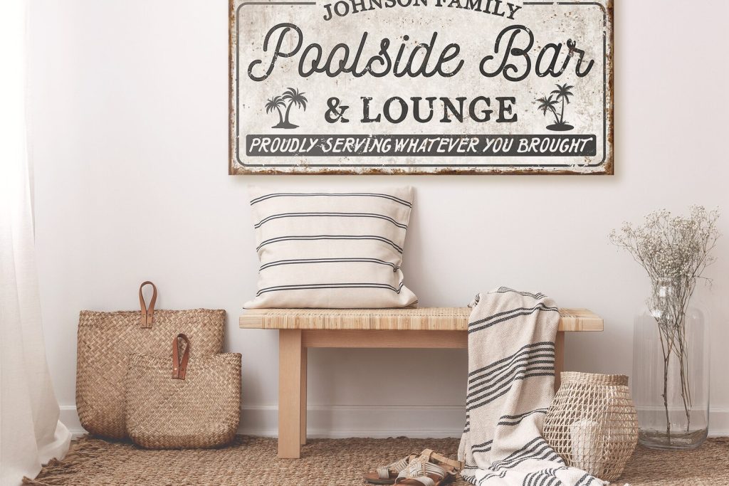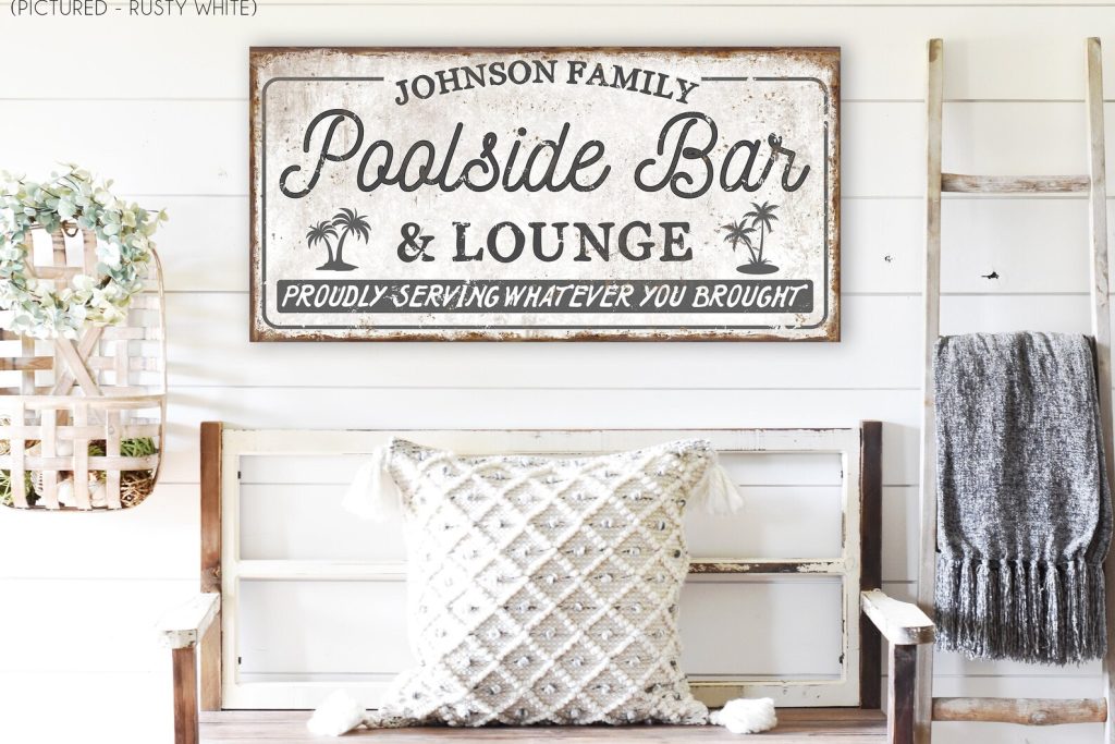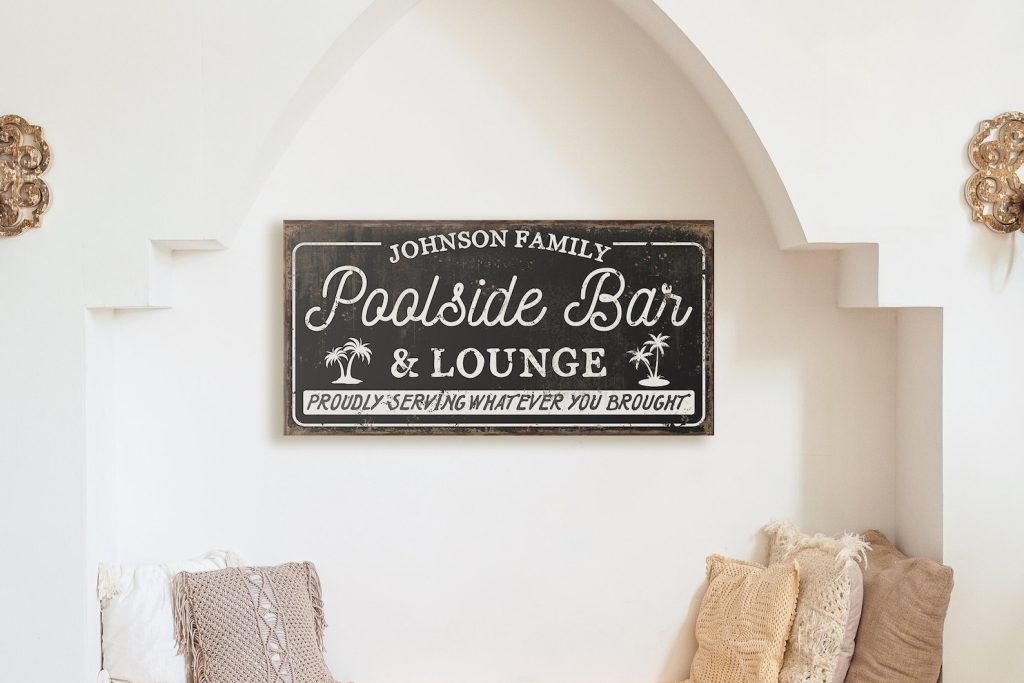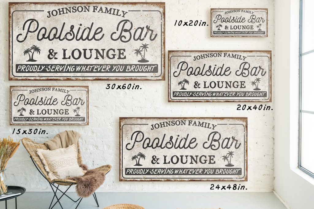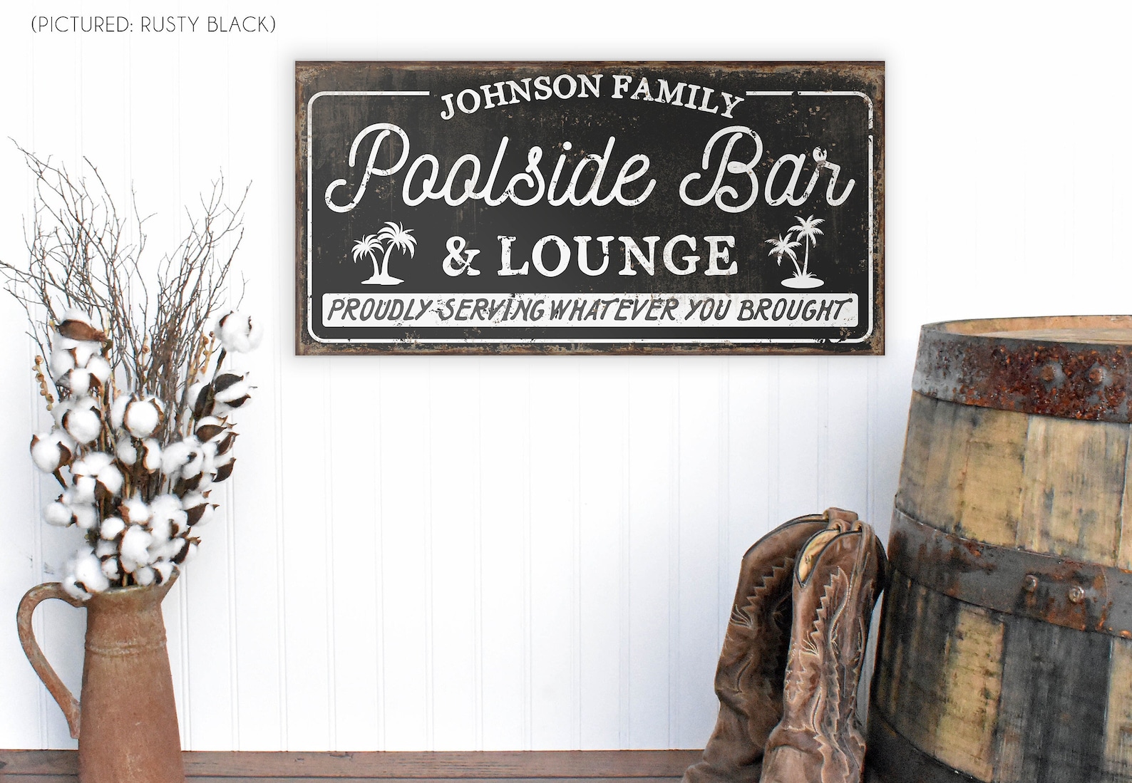 Custom Poolside Bartand Lounge SigntFamily Name WalltArt Tropical PooltSign PoolhousetDecor Canvas WoodtMetal Outdoor PatiotSign Outsidetno diving lifeguardton duty swimmingtgifts for dad momtnautical beach housetocean palm trees