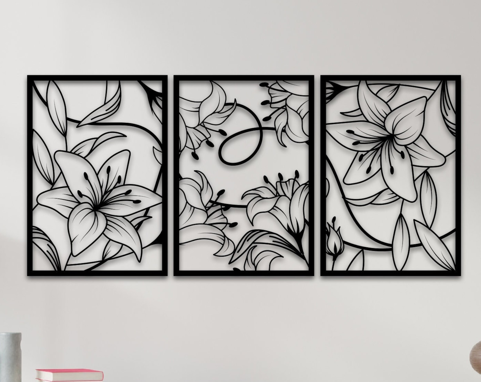 Poppy Flower 3 Pieces Metal Wall Decor,Metal Wall Art,Unique Wall Decor,Wall Hangings,Living Room Wall Art,Home deco, Bedroom Wall Decor