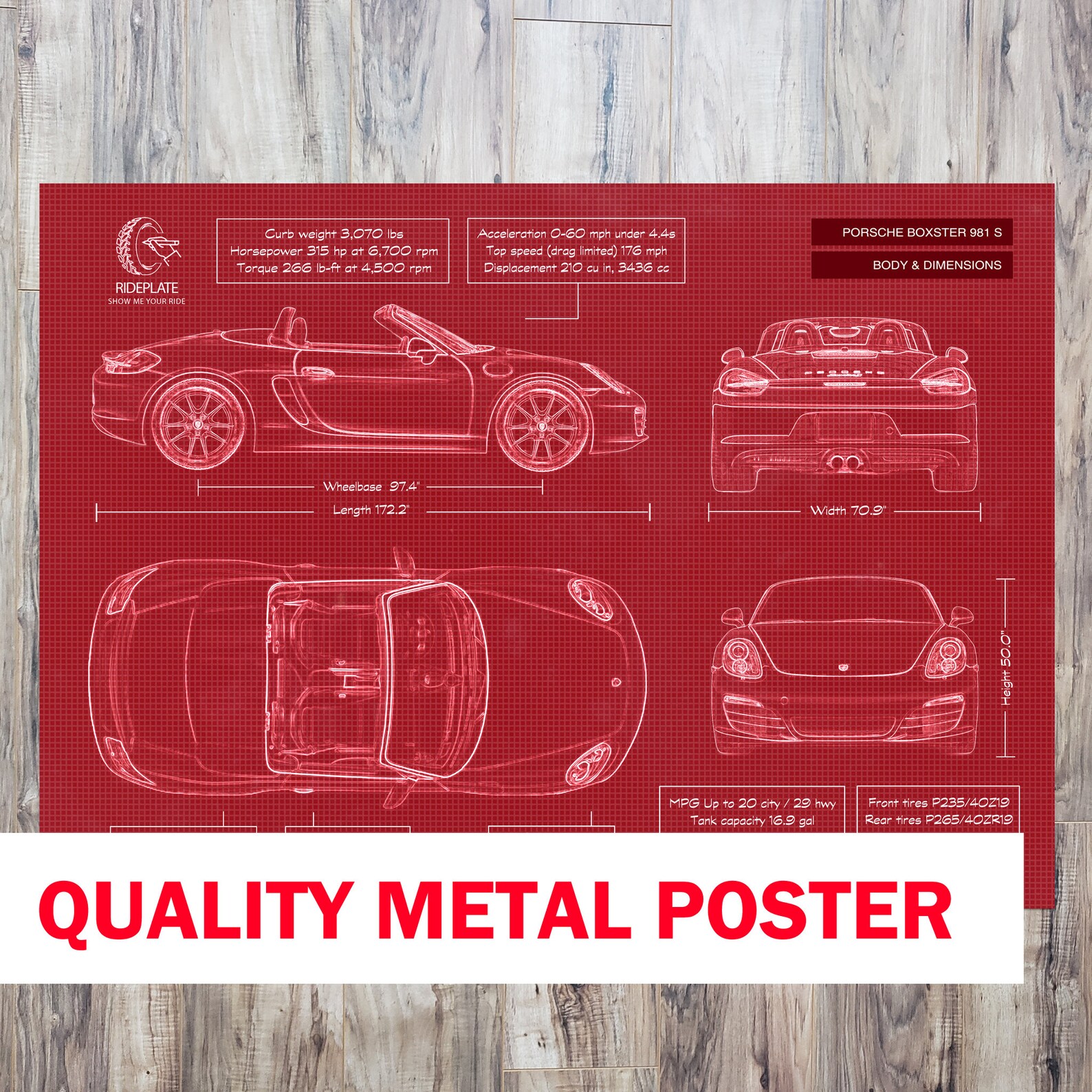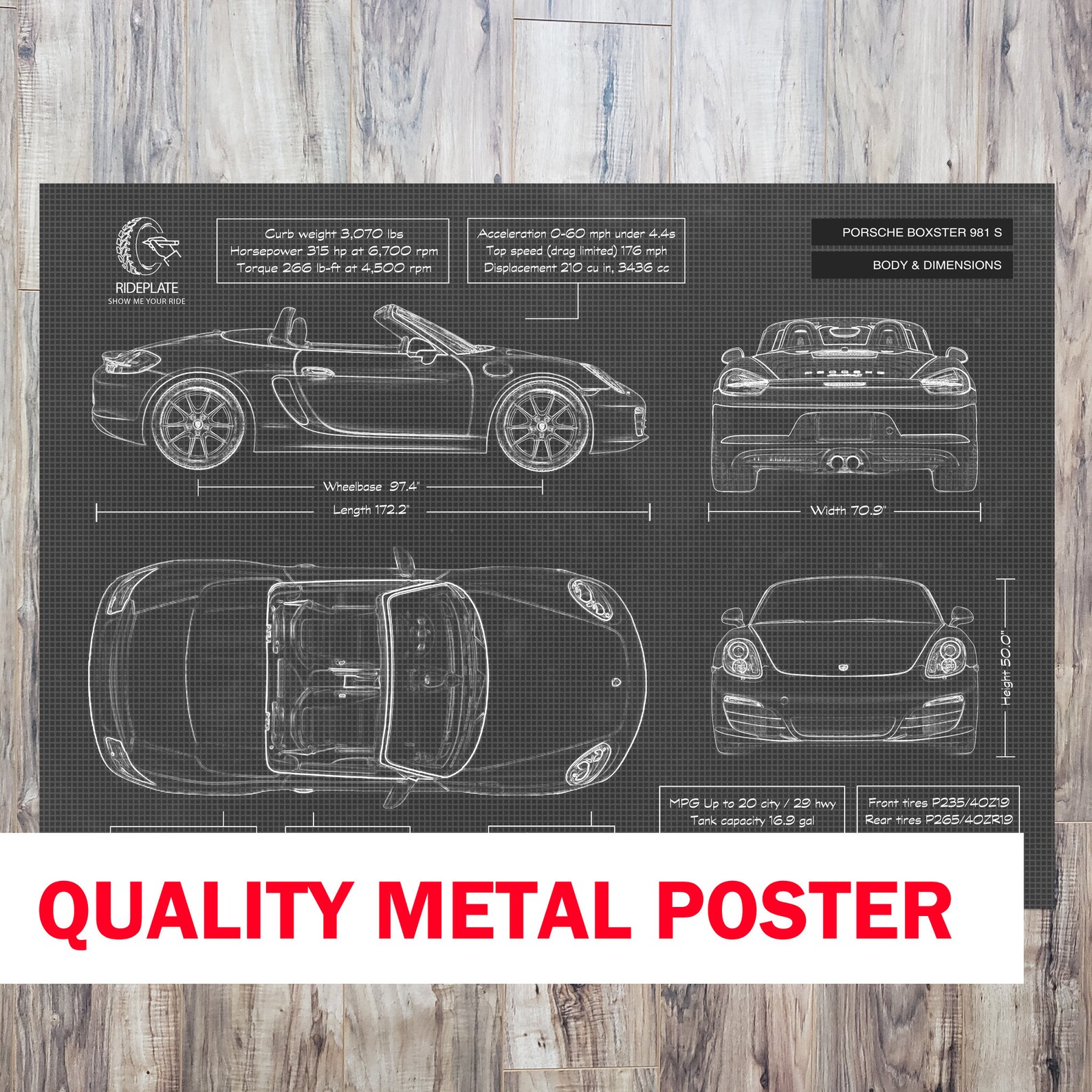 Be the first to review “Porsche Boxster 981 S Blueprint Metal Art”