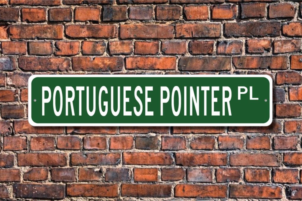Portuguese Pointer lovers check out this awesome street sign! This will make the perfect piece for any Portuguese Pointer lover or Portuguese Pointer cave. Made of premium aluminum it will stand the test of time. This sign will look great in any room, garage, barn or office! Get this sign for your favorite friend that loves a Portuguese Pointer !