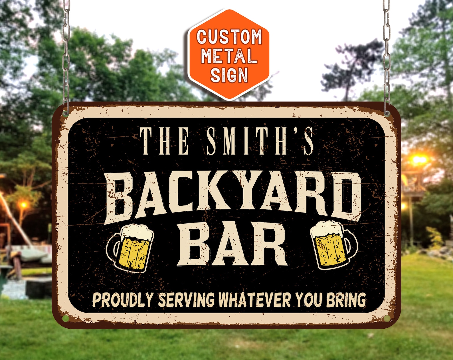 You choose the text. Be detailed and consider it will need to fit so will be smaller the longer or more words it is. Will be in shown font and you choose the background. Note wood and rust are not real so safe to the touch.