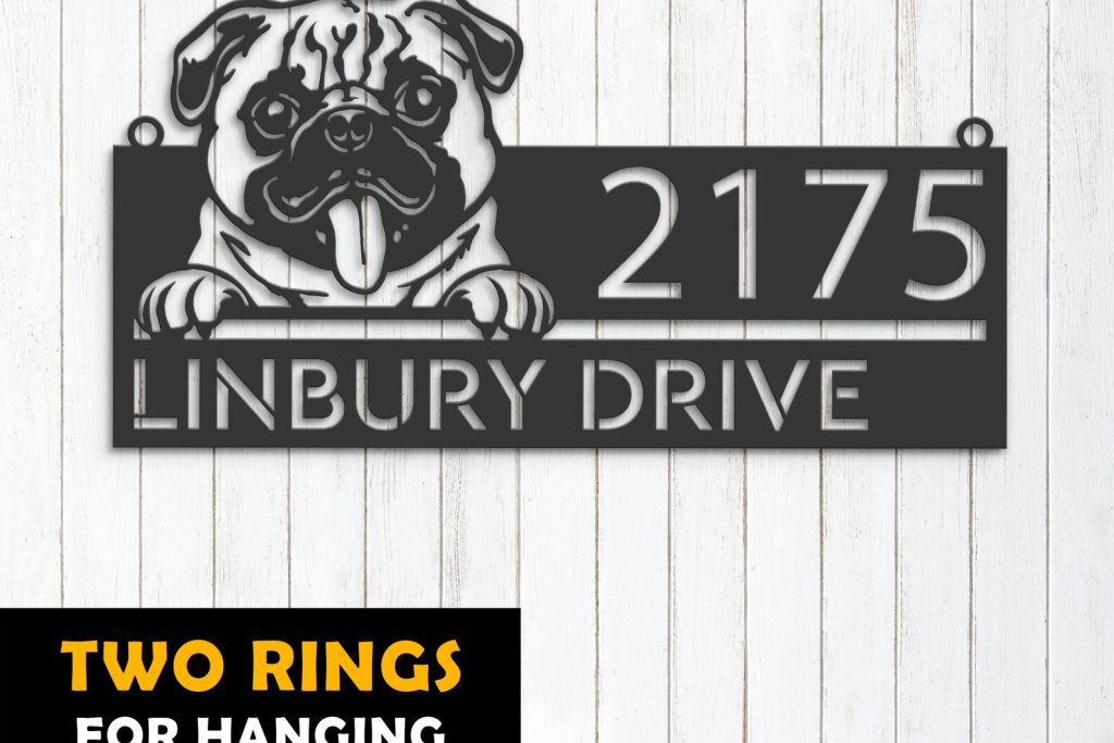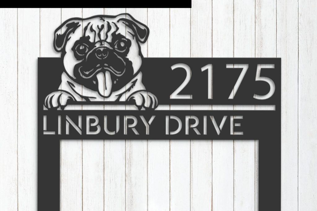 Be the first to review “Pug Address Sign – Custom Metal Cute Puppy Decor”