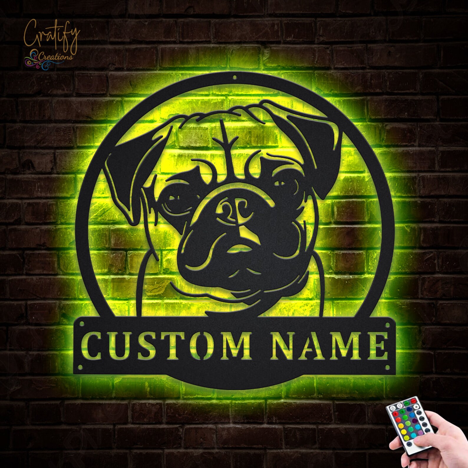 Be the first to review “Pug Dog Metal Wall Art with LED Lights”