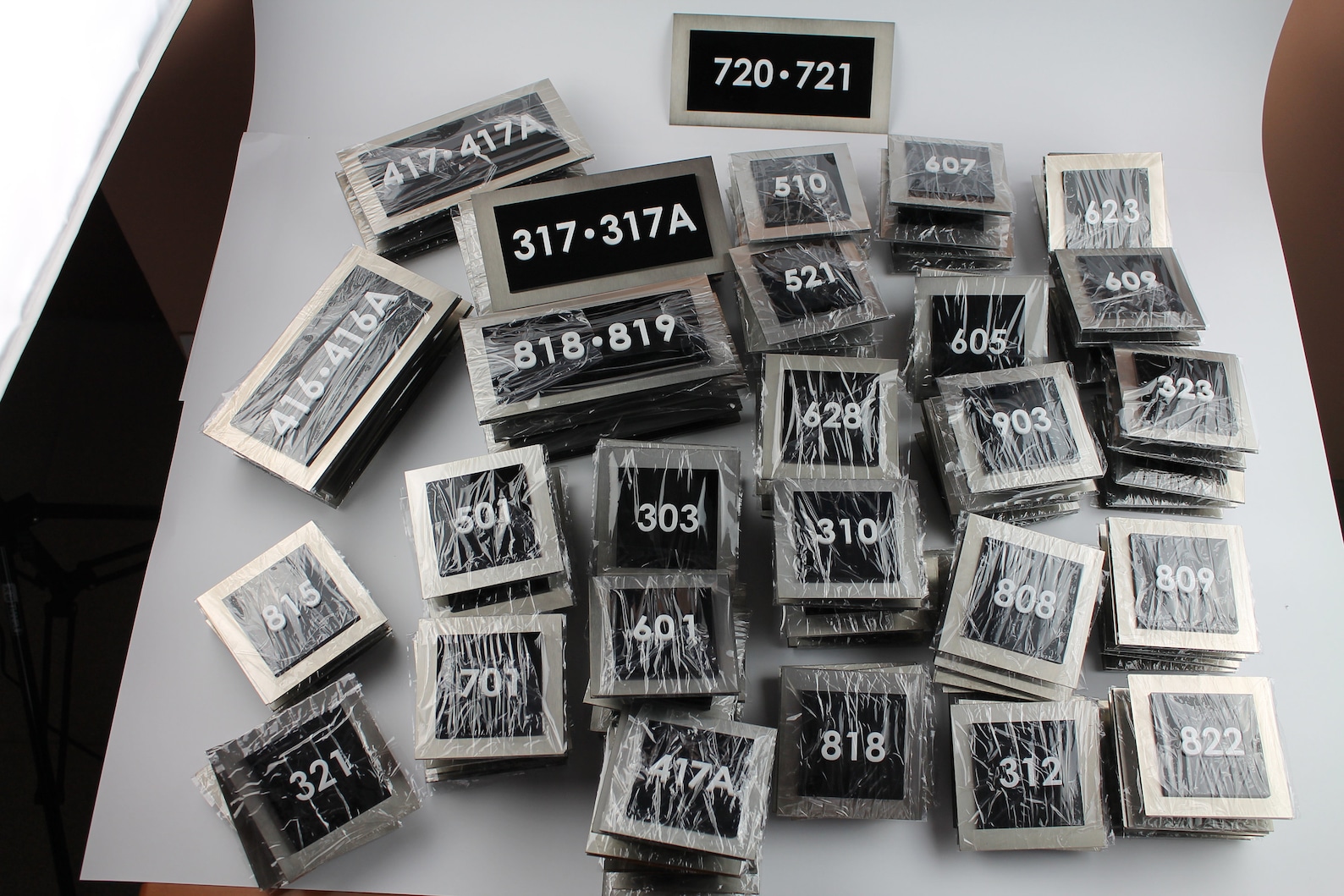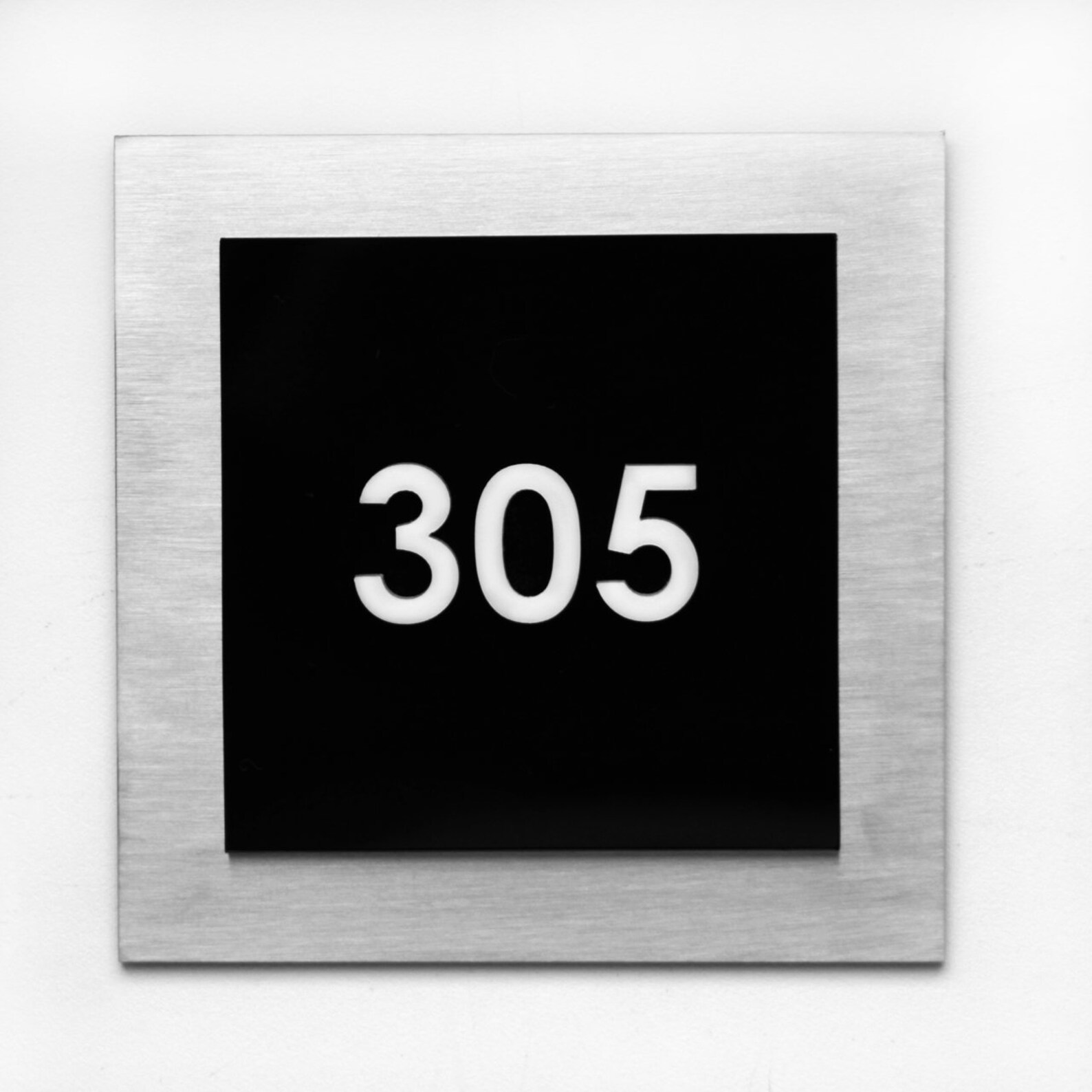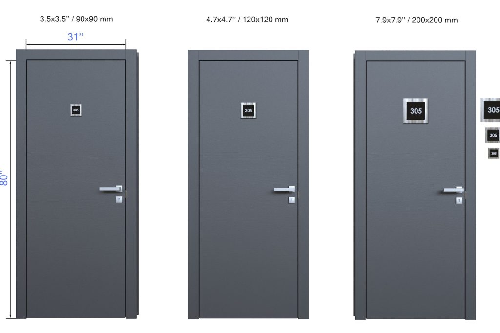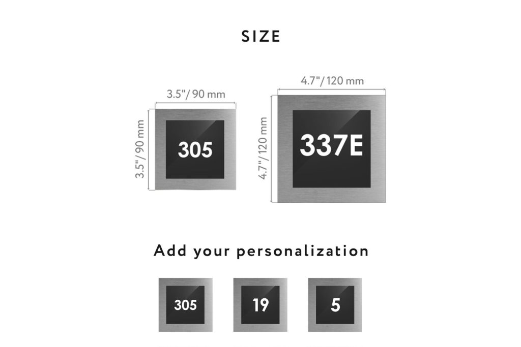 – The unit number signs are made of three layers: one stainless steel next color and milk acrylic.