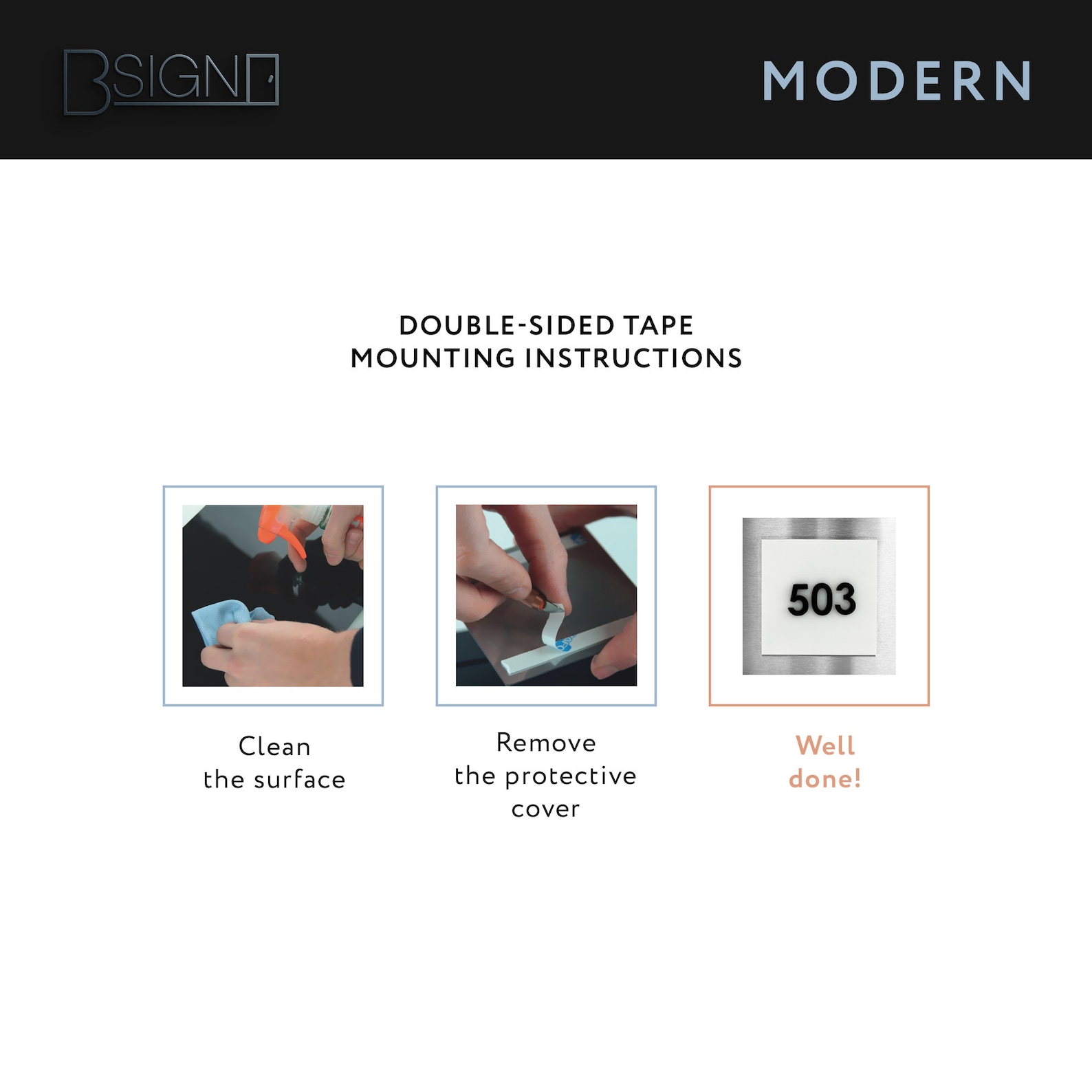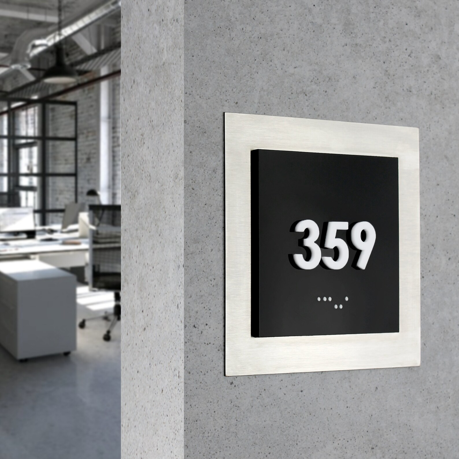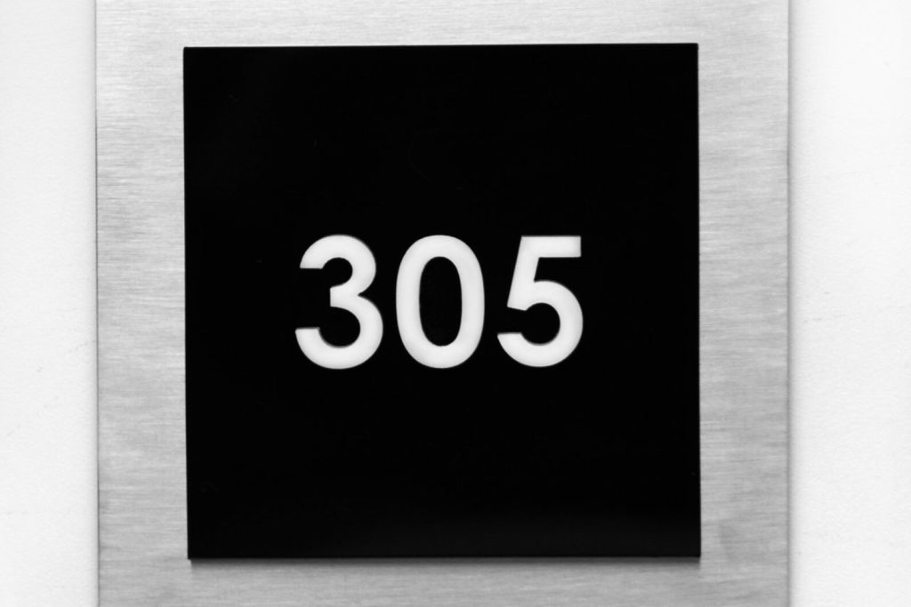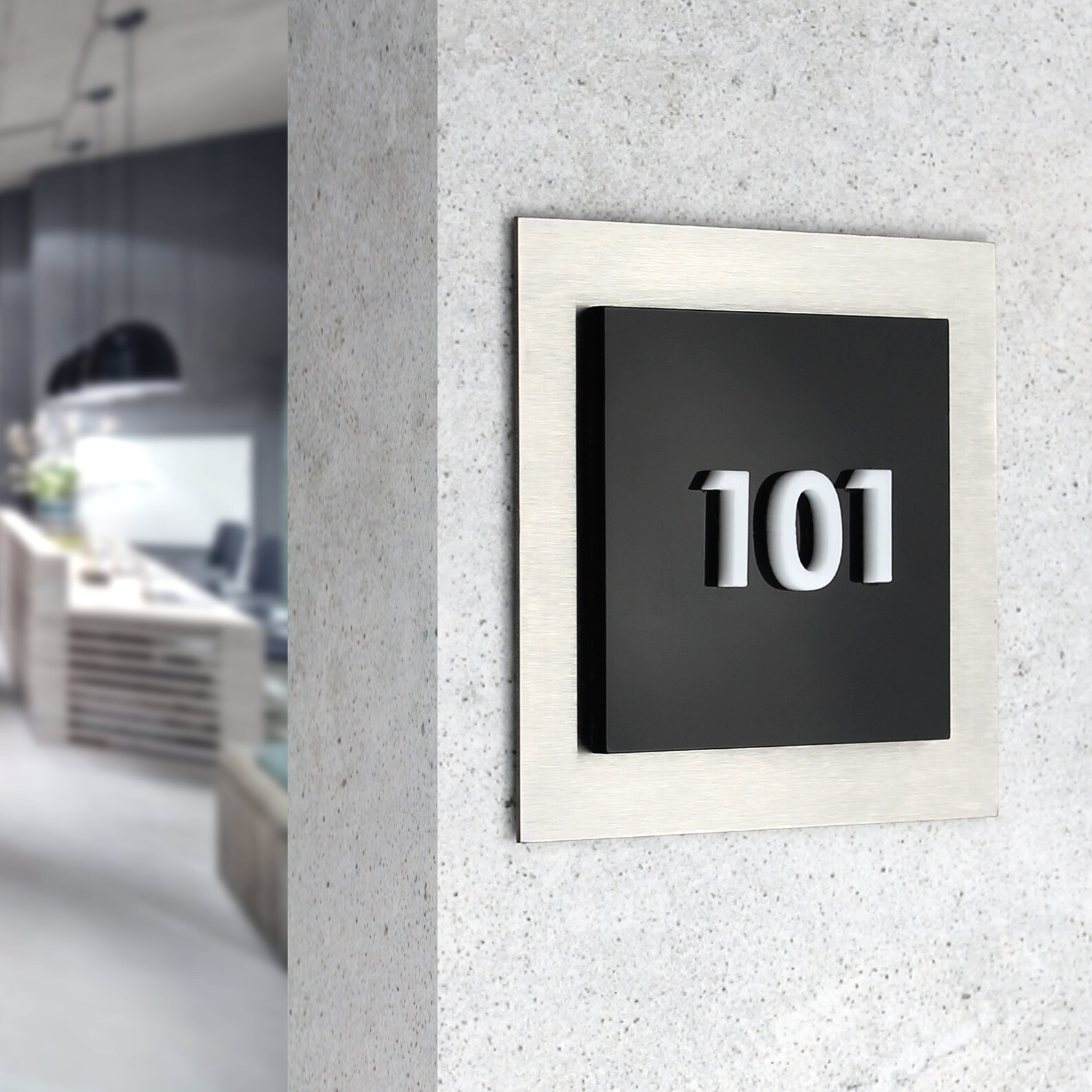 – The unit number signs are made of three layers: one stainless steel next color and milk acrylic.
