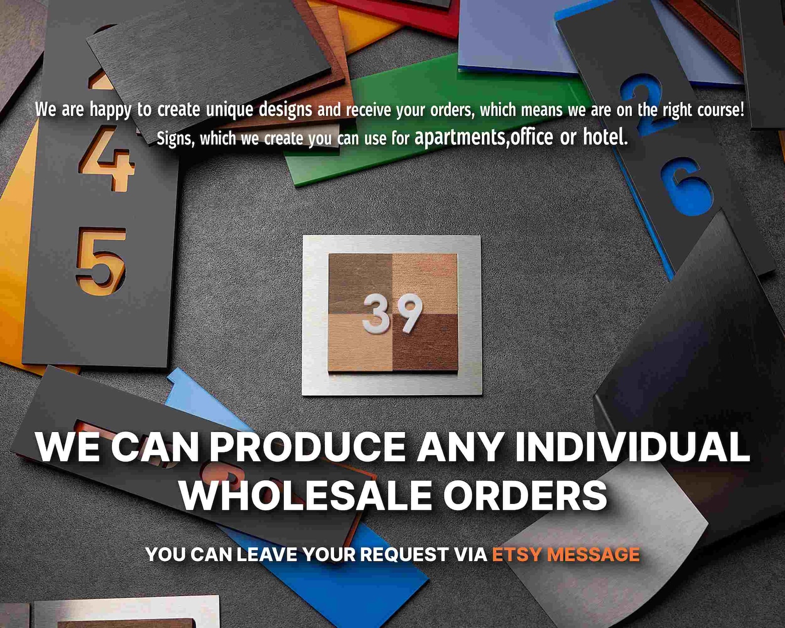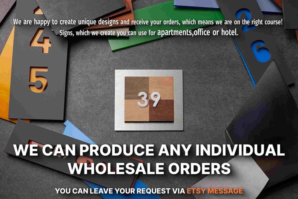 Introducing our Handmade room Door Number Sign for office, hotel , apartment, home number and etc., the perfect addition to any hotel, company, or room. Made with high-quality material and featuring a durable 3M adhesive tape on the back, this sign is built to last. Each piece is meticulously cut, painted, and assembled in our studio, ensuring a unique and charming addition to your interior decor.