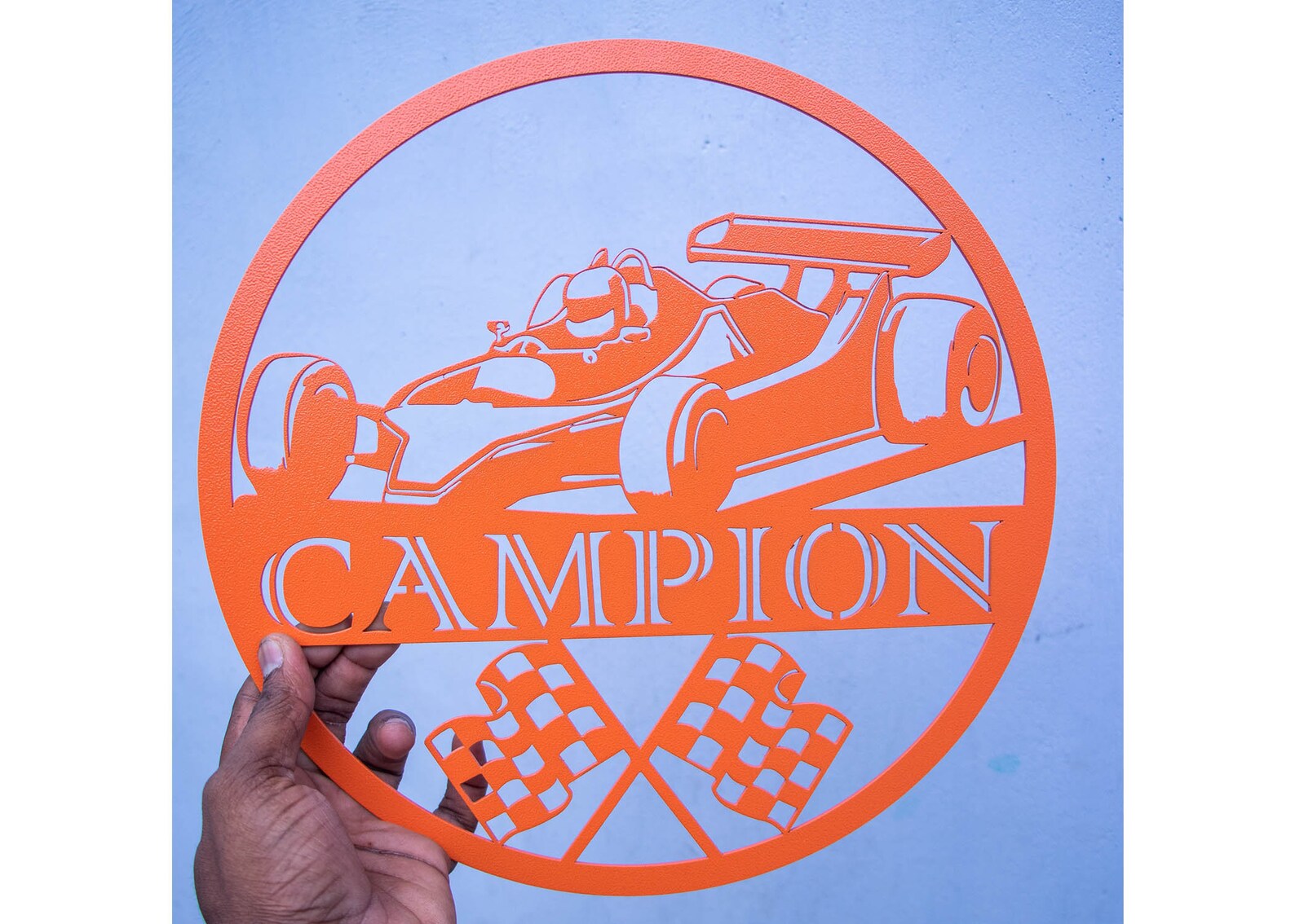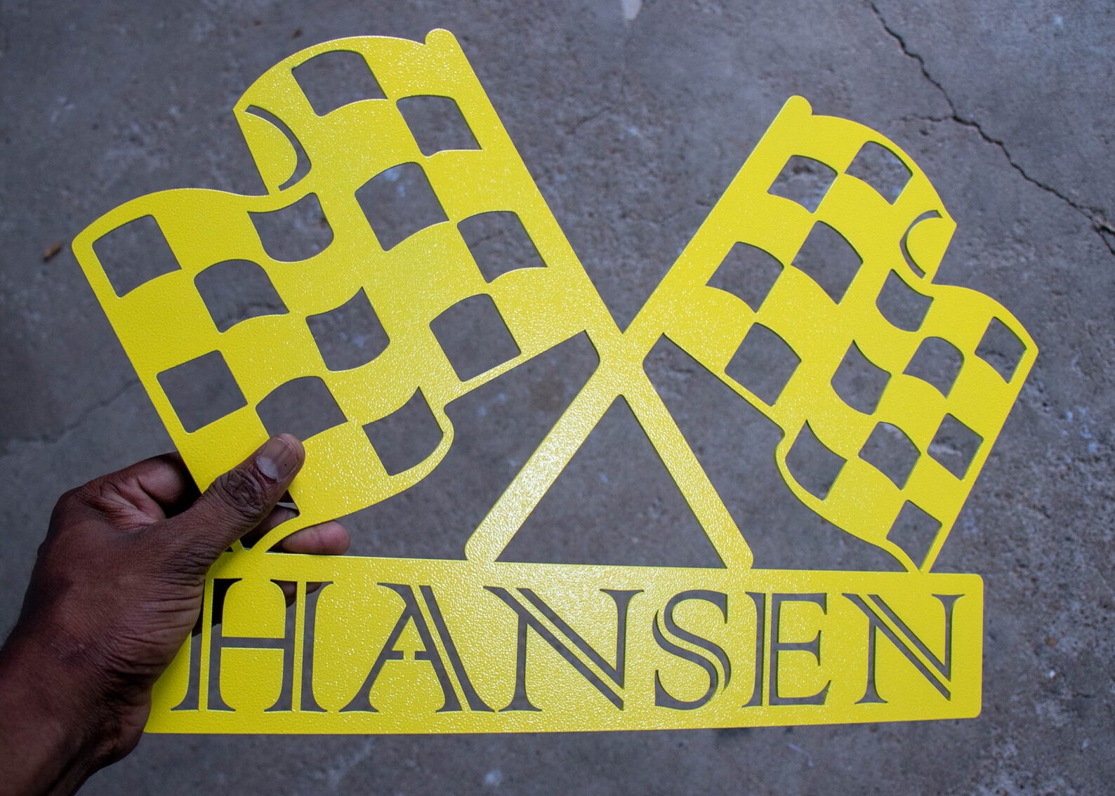 Race Car Sign – Custom Metal Checkered Flag Decor
