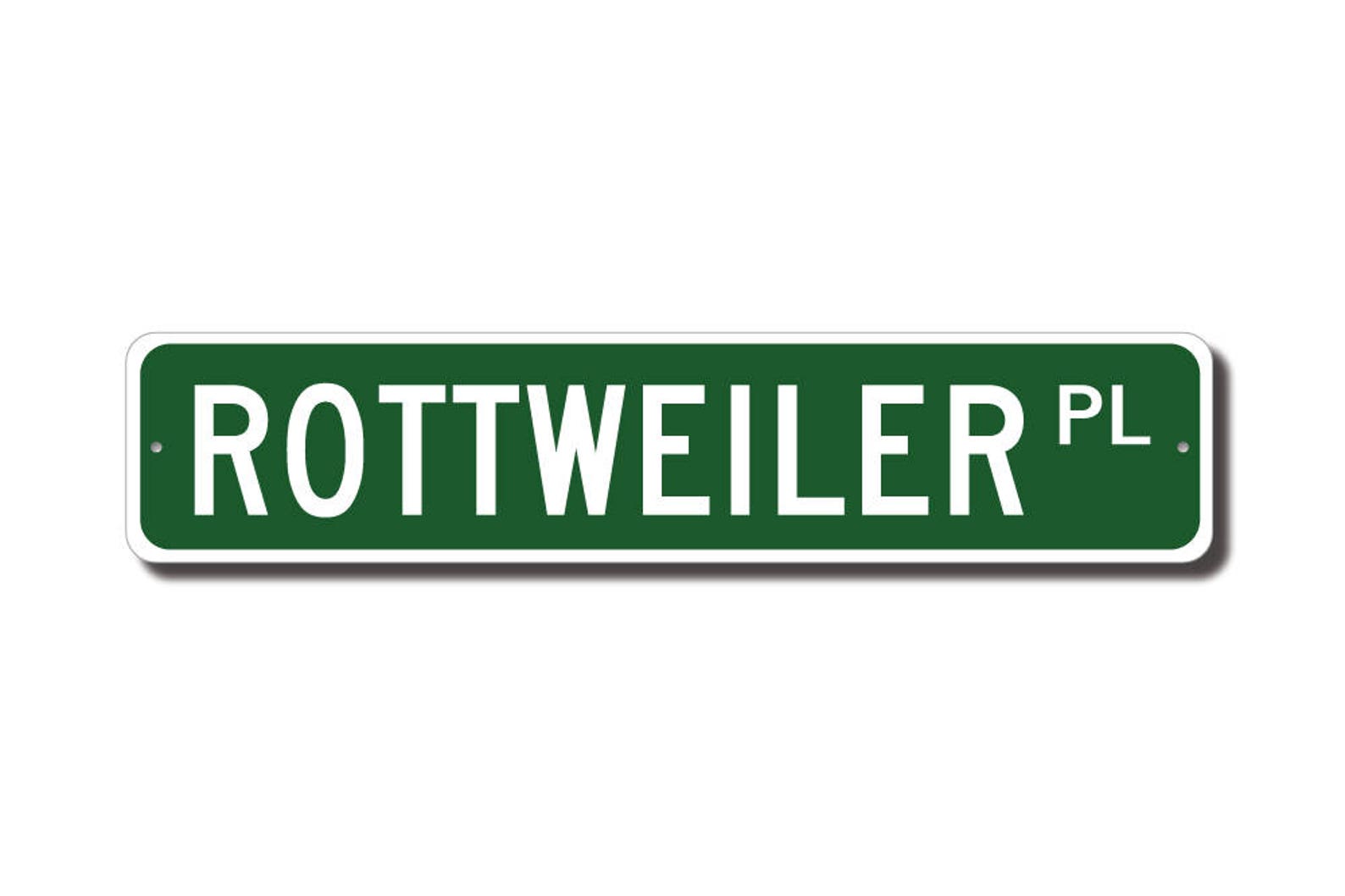 Rottweiler lovers check out this awesome street sign! This will make the perfect piece for any Rottweiler lover or Rottweiler cave. Made of premium aluminum it will stand the test of time. This sign will look great in any room, garage, barn or office! Get this sign for your favorite friend that loves a Rottweiler!