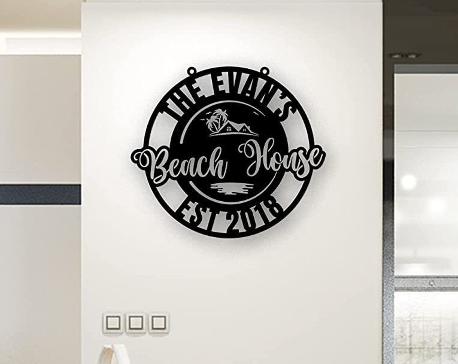 Be the first to review “Round Beach House Metal Sign, Custom Family Name”