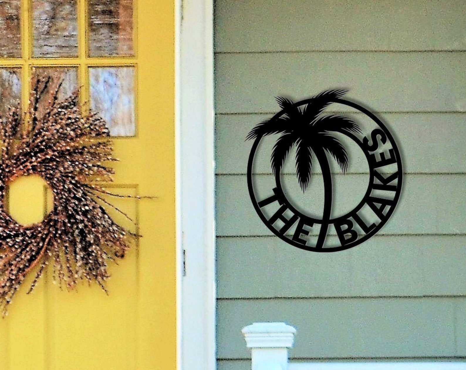 Round Palm Tree Metal Sign, Custom Beach House Decor