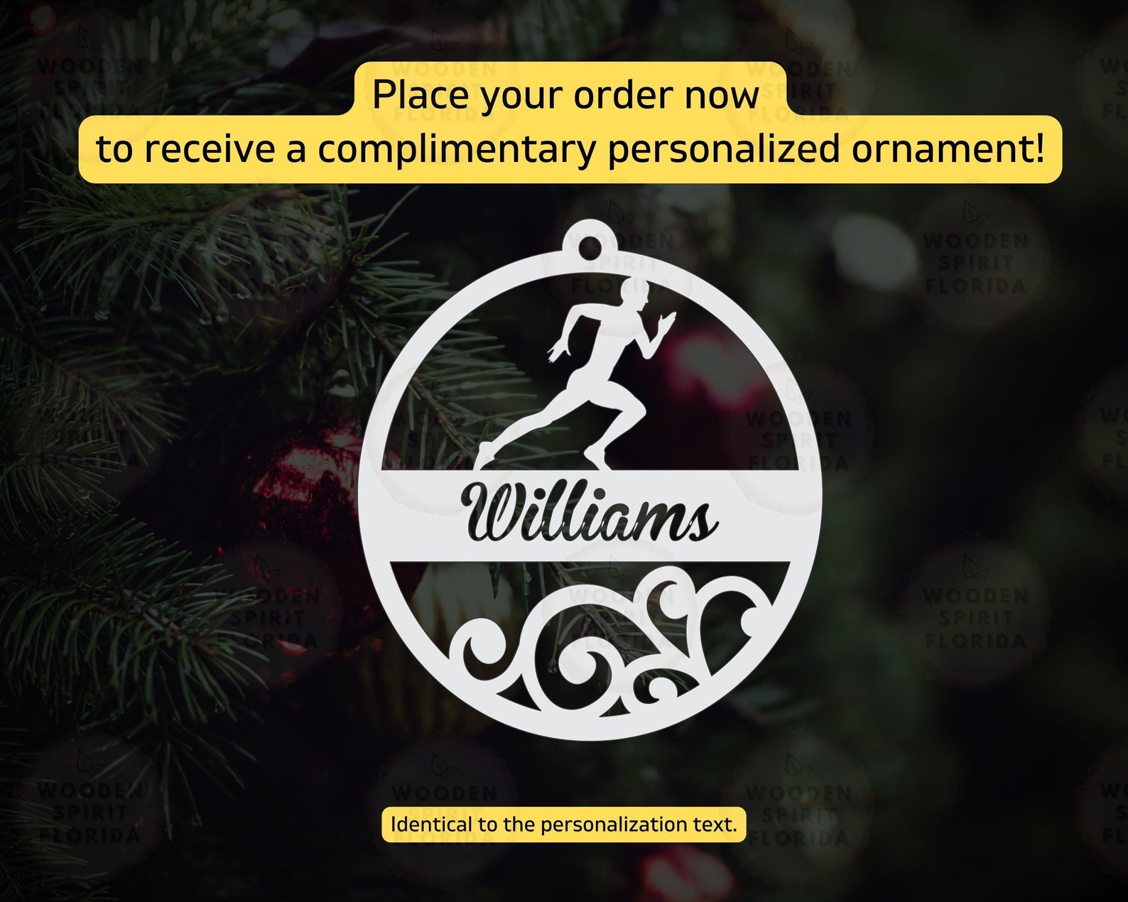 Complement your purchase with a FREE ornament, tailored to match the personalized text of your order.