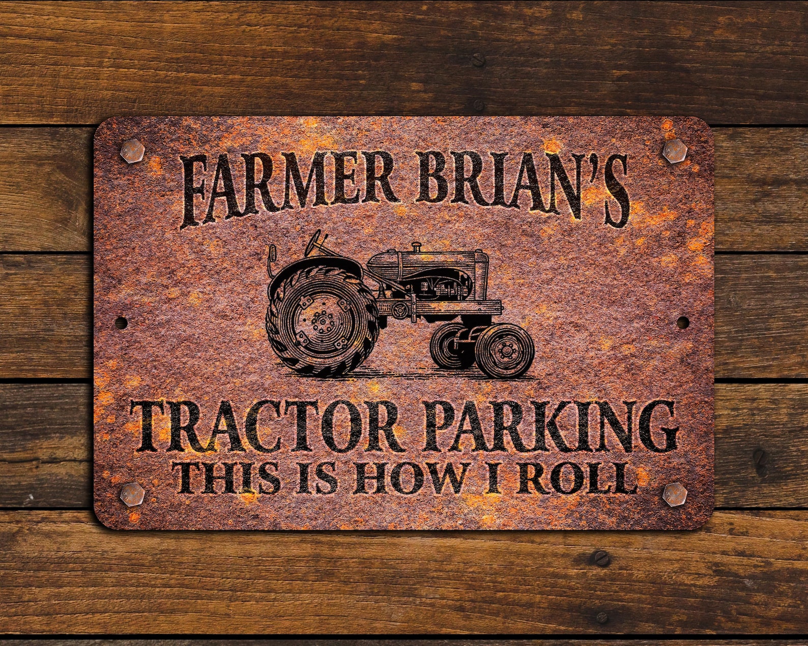 Personalized Rusty Design Tractor Parking Sign | Great Gift for Farmers or anyone with a Tractor | Customize this sign with your first name, last name or both | Designed with an extreme weathered rusty look | For that person who loves to plow!
