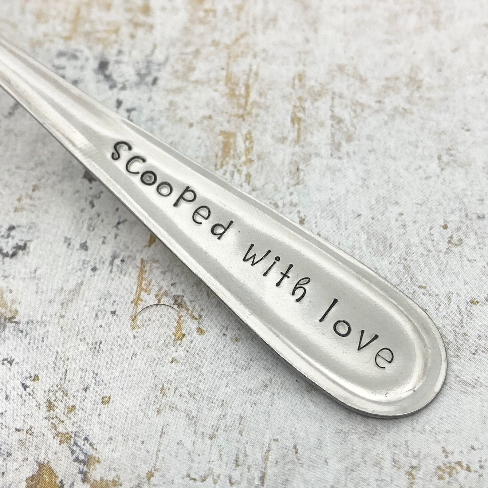 Hand stamped saying on scoops handle (up to 15 characters)