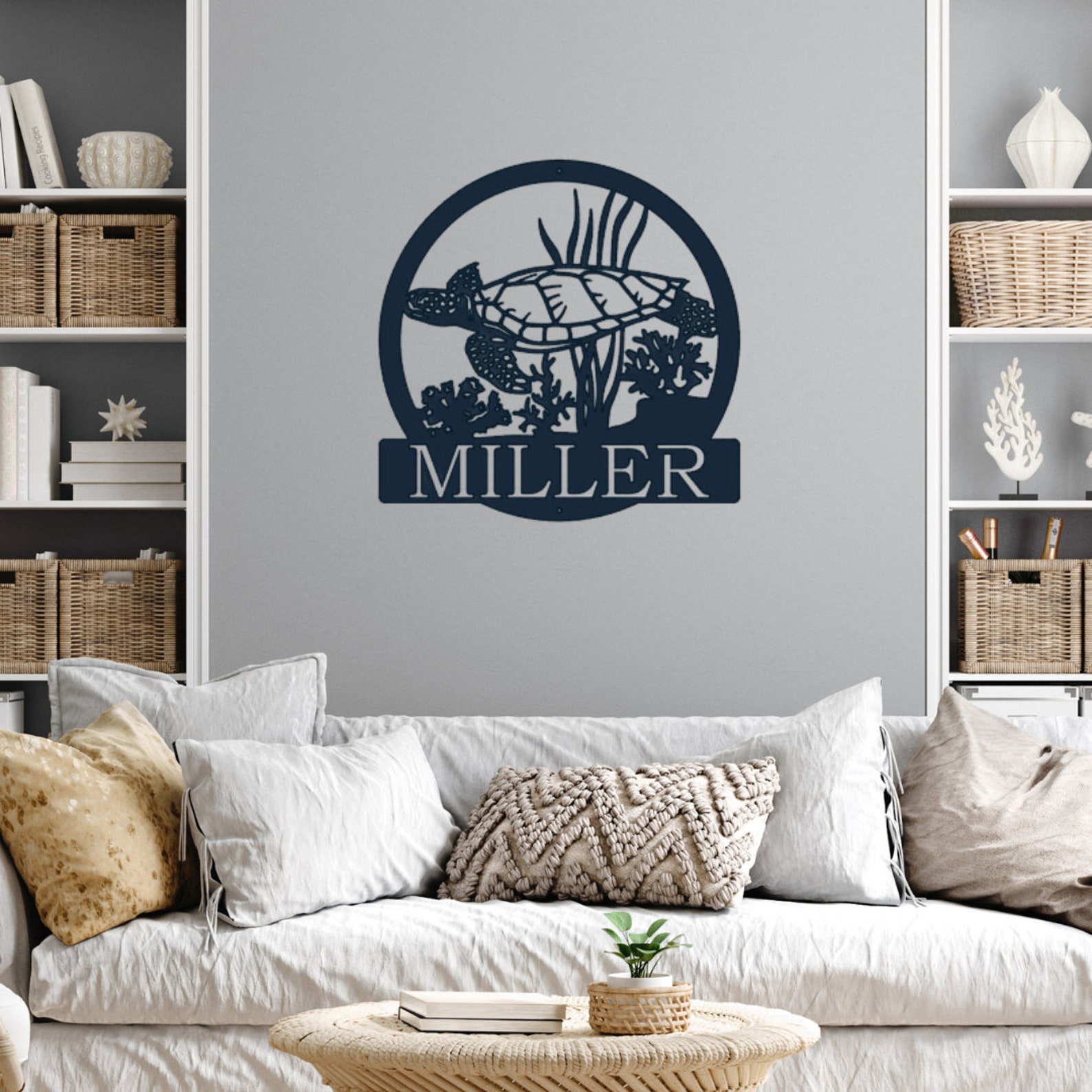Add a coastal touch to your space with our Metal Personalized Sea Turtle Sign. This beach-inspired masterpiece crafted just for you. This Nautical Wall Art captures the essence of seaside living. Personalize it with your family name to create a unique Last Name Metal Sign. Whether you9;re a beach lover or simply want to bring coastal charm to your space, this Metal Sign is the perfect choice.