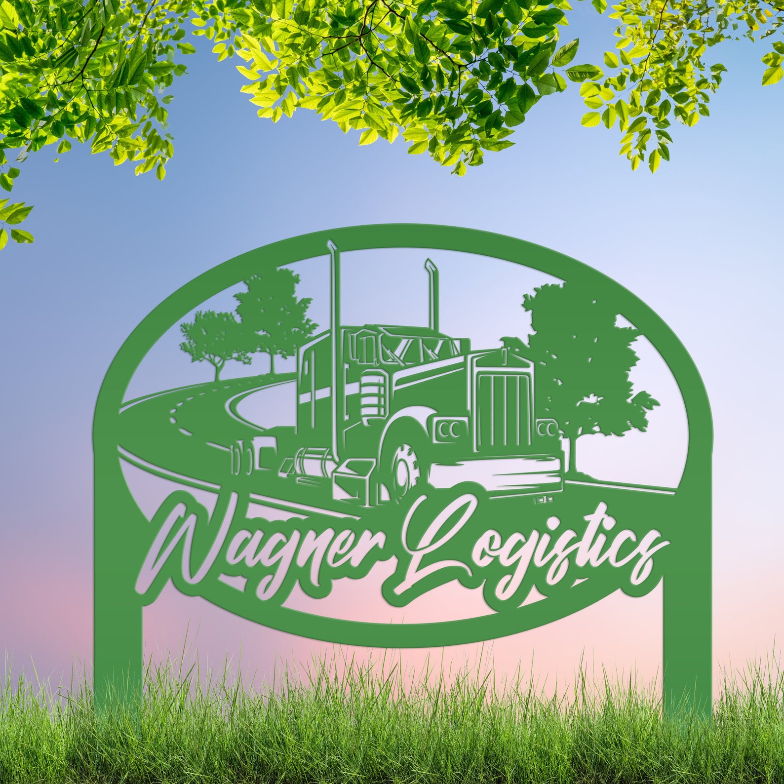 Check out our Diesel Shop Yard Stake, a custom metal semi truck outdoor business sign! This 18 Wheeler Garden Art is the perfect addition to any shop, mechanics garage, or even your garden. Show off your love for big rigs with this unique and eye-catching piece of art that can also be personalized with your shop9;s name or make it your own wording. Crafted with care and attention to detail, this yard stake is sure to impress both truck enthusiasts and passersby. Add a touch