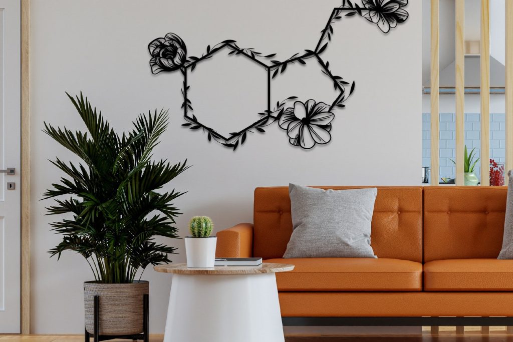 Serotonin Metal Wall Art ,Flowered Serotonin Molecule,Symbol of Happiness Wall Art,Unique Home Decor,Housewarming Gift,Above Bed Decor,Sign, Happiness Molecule Decor, Serotonin Symbol, Chemistry Wall Hangings, Wedding Gift, Mental Health Matters Design