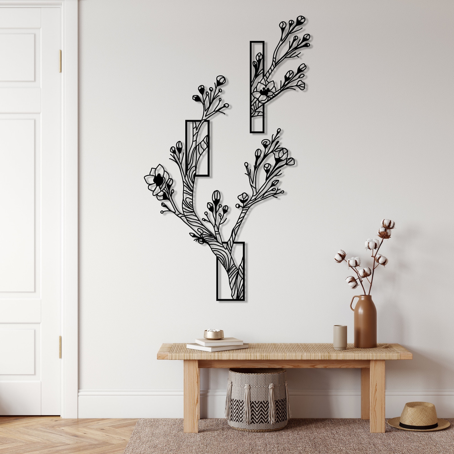 Metal Tree Wall Decor Set of 2, Metal Tree Wall Hanging Art, Flower Tree Sign Home Decor, Floral Boho Bedroom Decor, Tree Housewarming Gift
