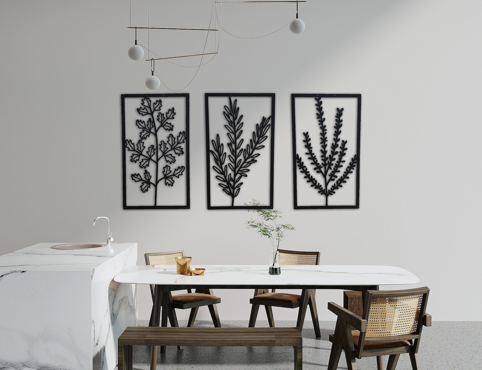 NO ASSEMBLY REQUIRED – Metal wall art SET arrives ready to hang with a pre-installed sawtooth hanger.