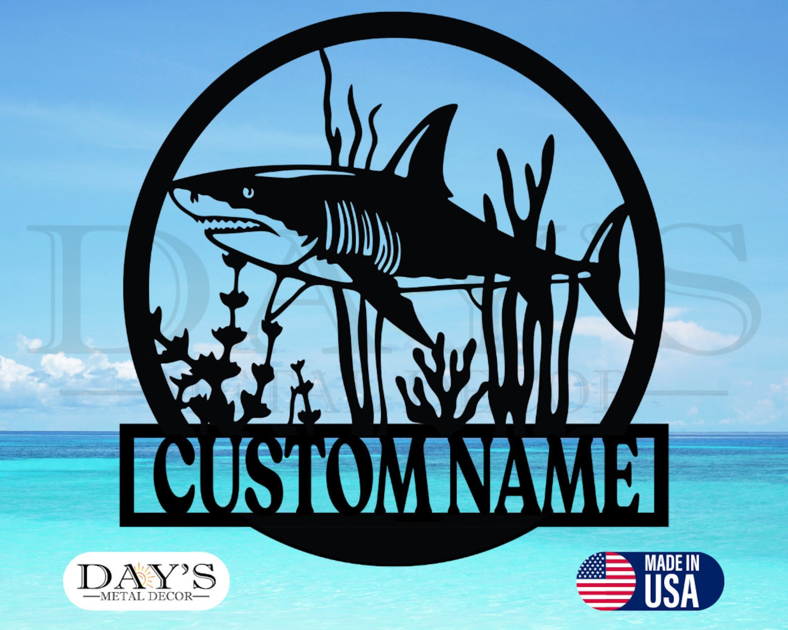 Shark Personalized Metal Sign, Outdoors Sign, Personalized, Metal Signs, Patio Decor, Beach House Decor, Gift For Her, Gifts, Signs, Sharks