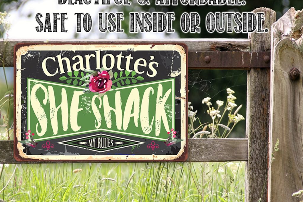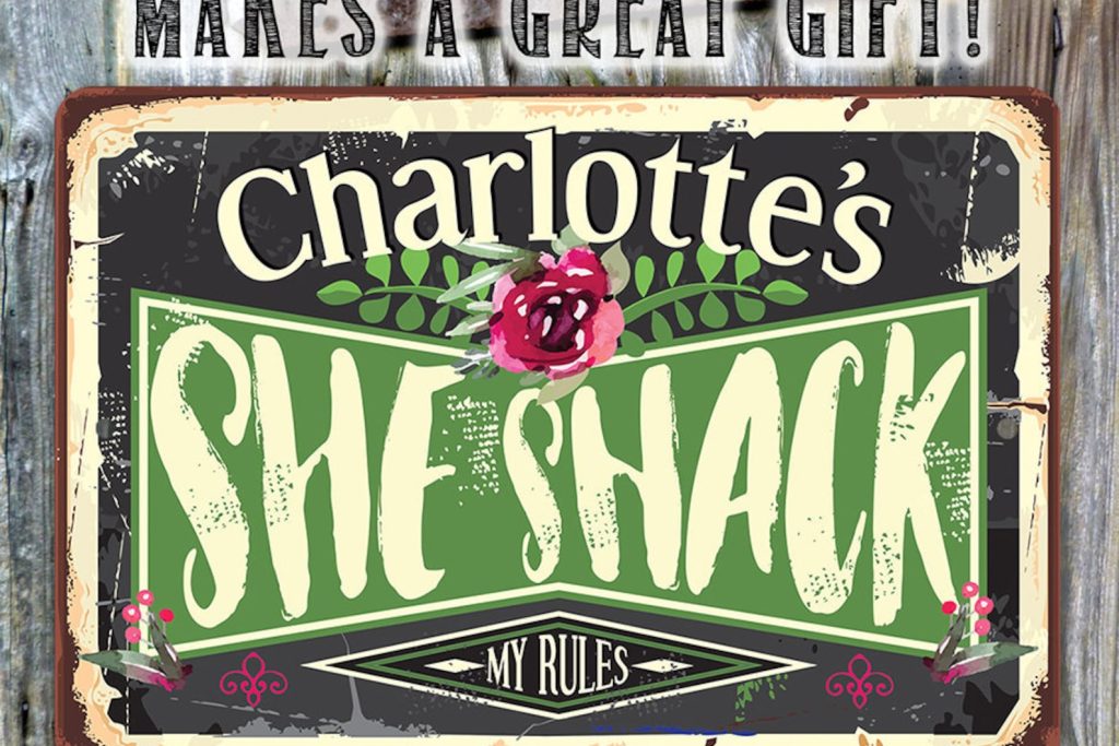 Personalized Metal Sign – She Shack – Tin – Use Indoor/Outdoor 8" or 12" – Great Gift & Decor