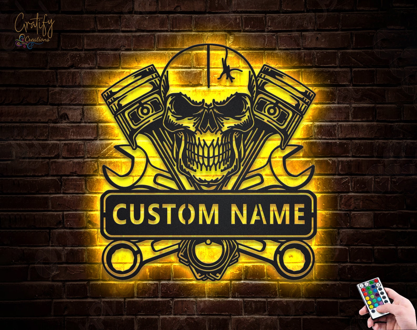 Looking for a unique and eye-catching way to decorate your garage or workshop? Look no further than our Skull Garage Metal Wall Art LED Light Custom Workshop Name Sign!