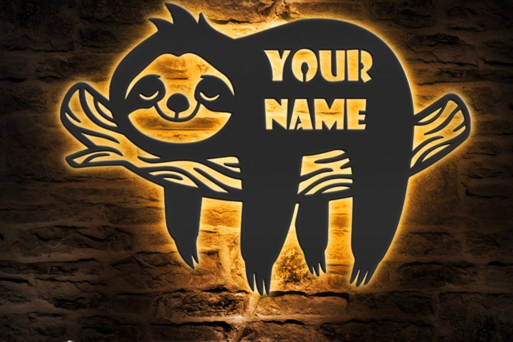 Sloth LED Metal Wall Art – Personalized Lazy Lover’s Gift
