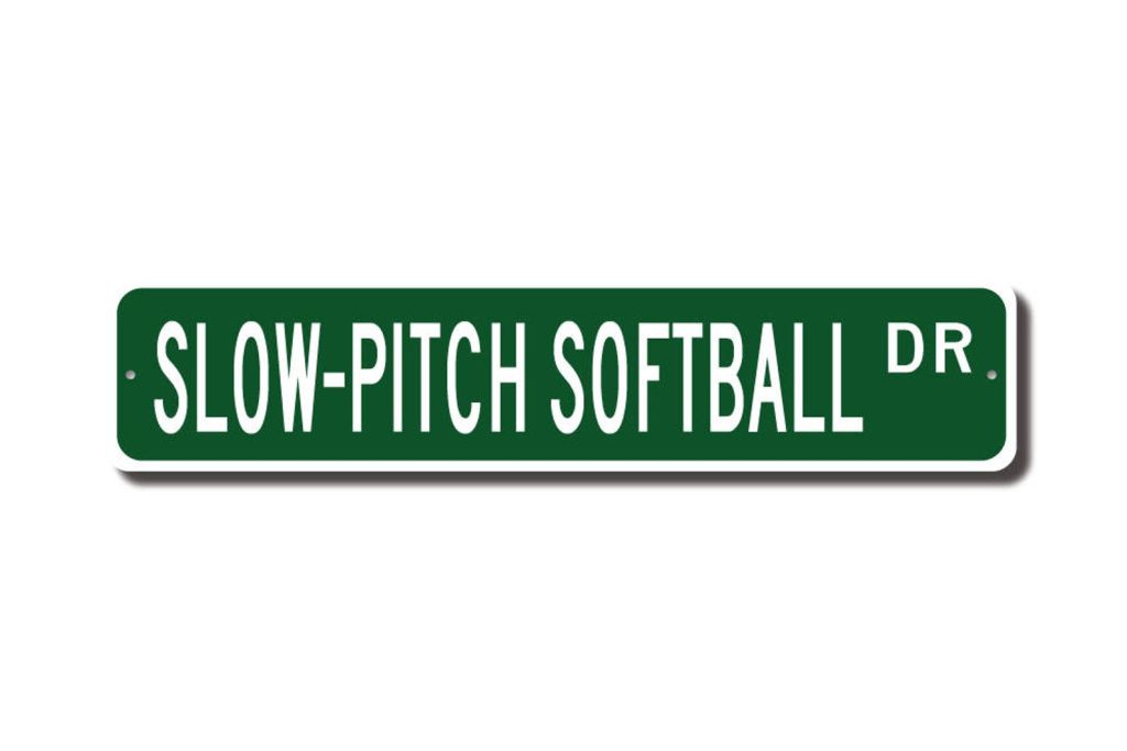 Slow-Pitch Softball lovers check out this awesome street sign! This will make the perfect piece for any Slow-Pitch Softball fan, or maybe you are a Slow-Pitch Softball lover looking for a cool decor piece ! Made of premium aluminum it will stand the test of time. This sign will look great in any room, home den, cave, or office ! Get this sign for your favorite Slow-Pitch Softball aficionado !