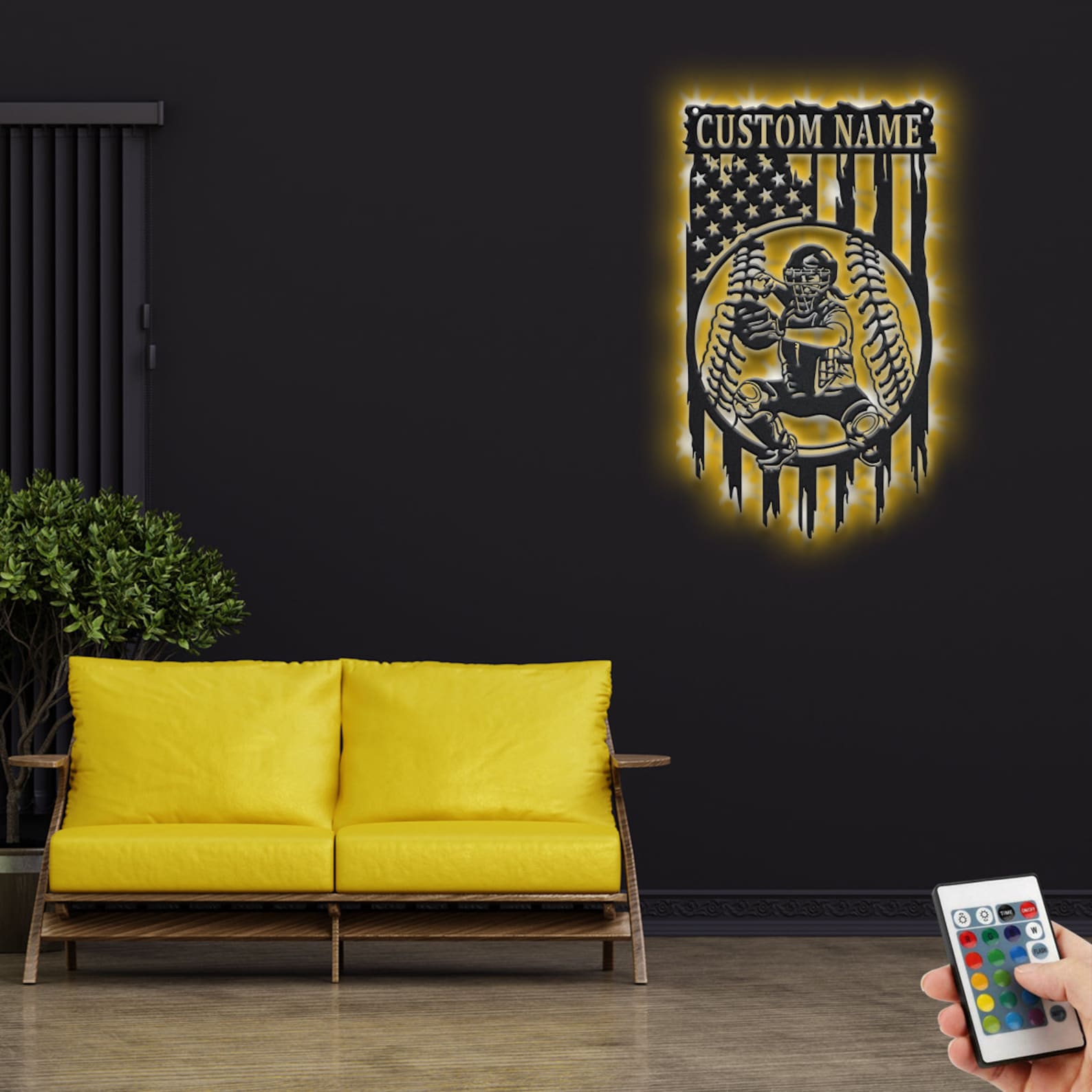 Softball Metal Art with LED, Personalized Player Sign