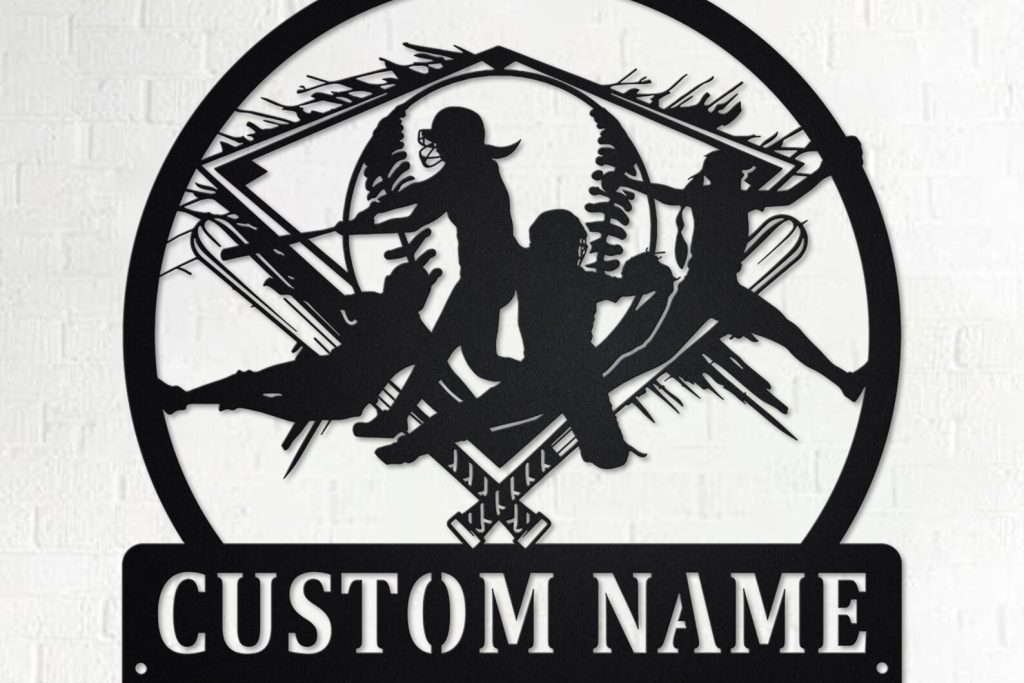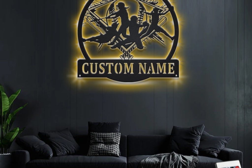 Softball Metal Art with LED, Personalized Team Sign