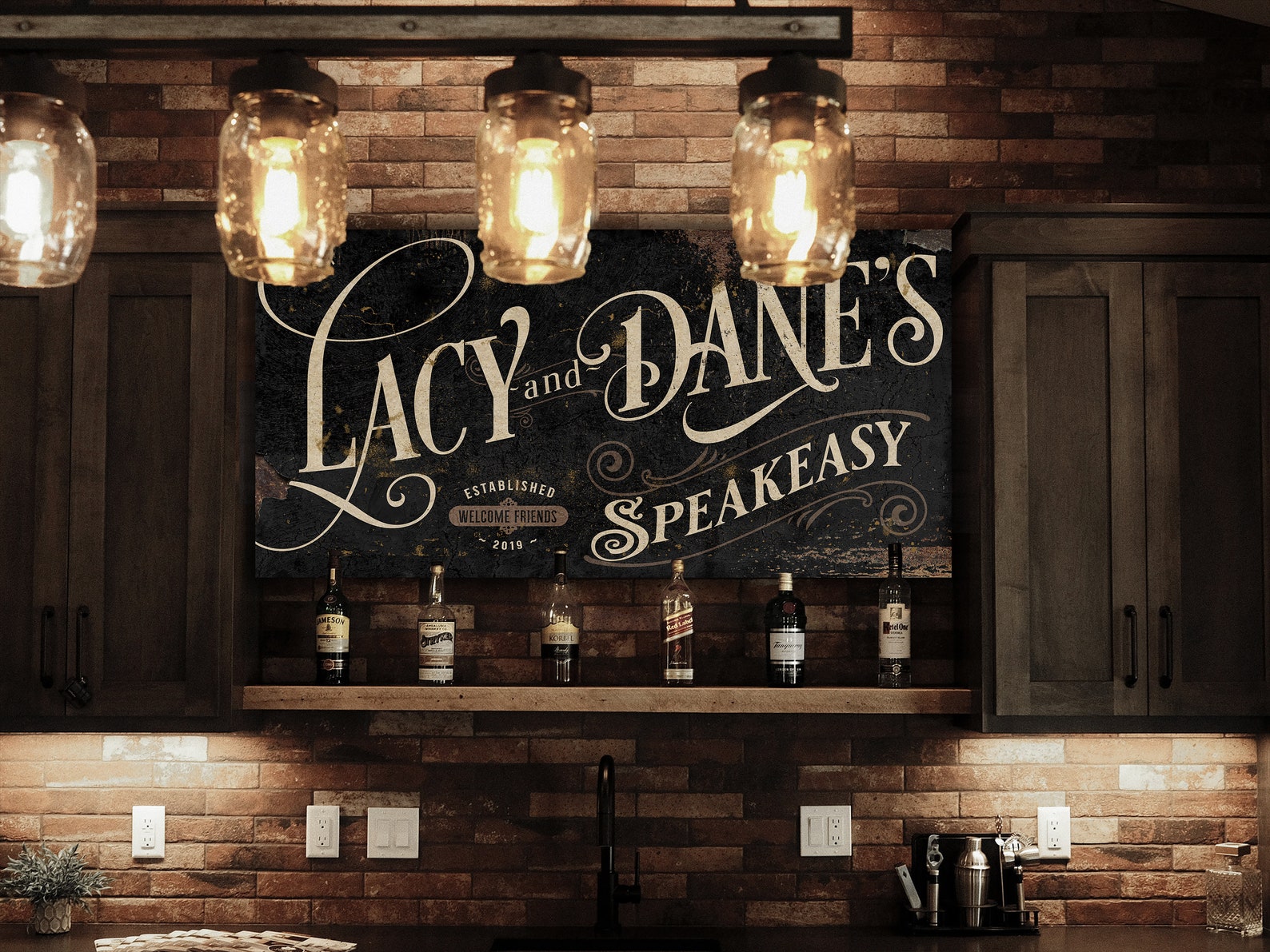 This vintage Speakeasy bar sign offers a rustic, primitive, modern farmhouse look and feel. Display this rustic, family Speakeasy bar sign anywhere in your home. It comes in your choice of metal or canvas!