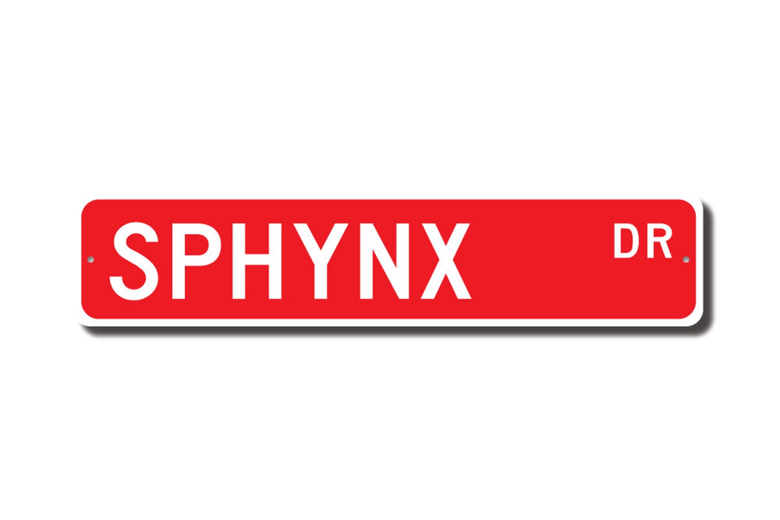 Sphynx lovers check out these fantastic street signs ! They would be a perfect gift for any Sphynx fan. These are premium aluminium signs which will stand the test of time. This would be a great decor sign for any room, den, barn or office! Get this sign for your favorite friend that loves a Sphynx !