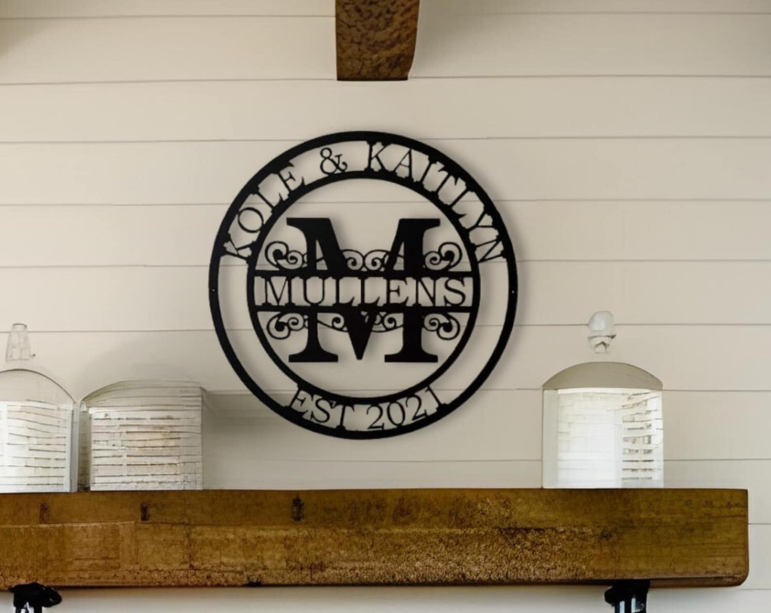 Celebrate special moments with our Custom Metal Sign, featuring an Elegant Split Letter Monogram. This Established Monogram Metal Sign is more than a decor piece; it9;s a timeless and personalized statement. Crafted with precision, this metal sign is a perfect Wedding Gift, adding a touch of sophistication to any space. Personalized with your chosen monogram, it becomes a unique and thoughtful addition to your home. Elevate your decor with this custom metal sign, marking significant milestones and creating a lasting impression. Embrace elegance and make a statement with this Personalized Sign, a perfect blend of style and sentiment for any occasion.
