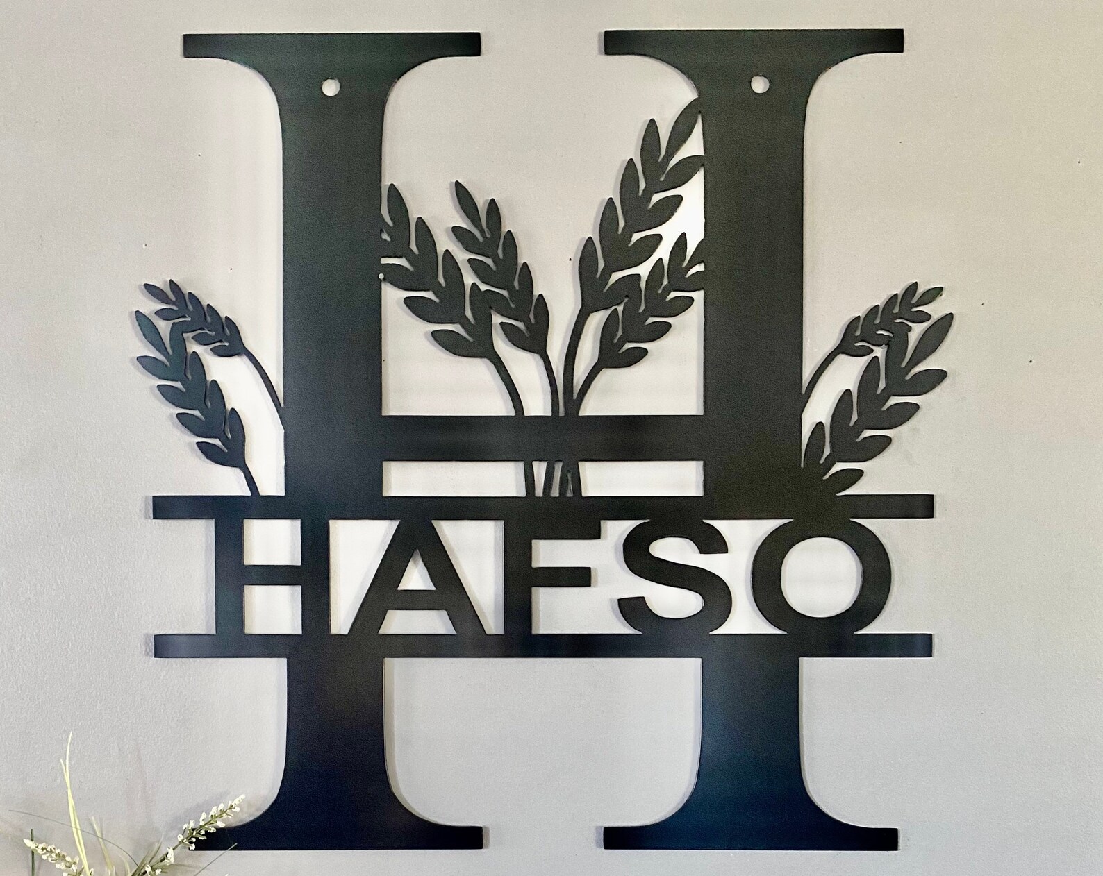 Be the first to review “Split Letter Family Name Metal Sign, Wheat Art”