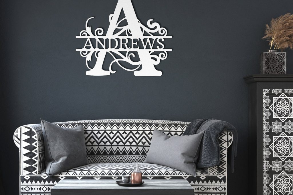 Customize your own Split Letter Monogram Letters with us. Feature your family name front and center on an elegant monogrammed sign. These classy home dcor wall signs are wonderful for displaying both indoors and out. Hang them on front doors, porches, patios, garden walls, and in home entryways or living rooms.
