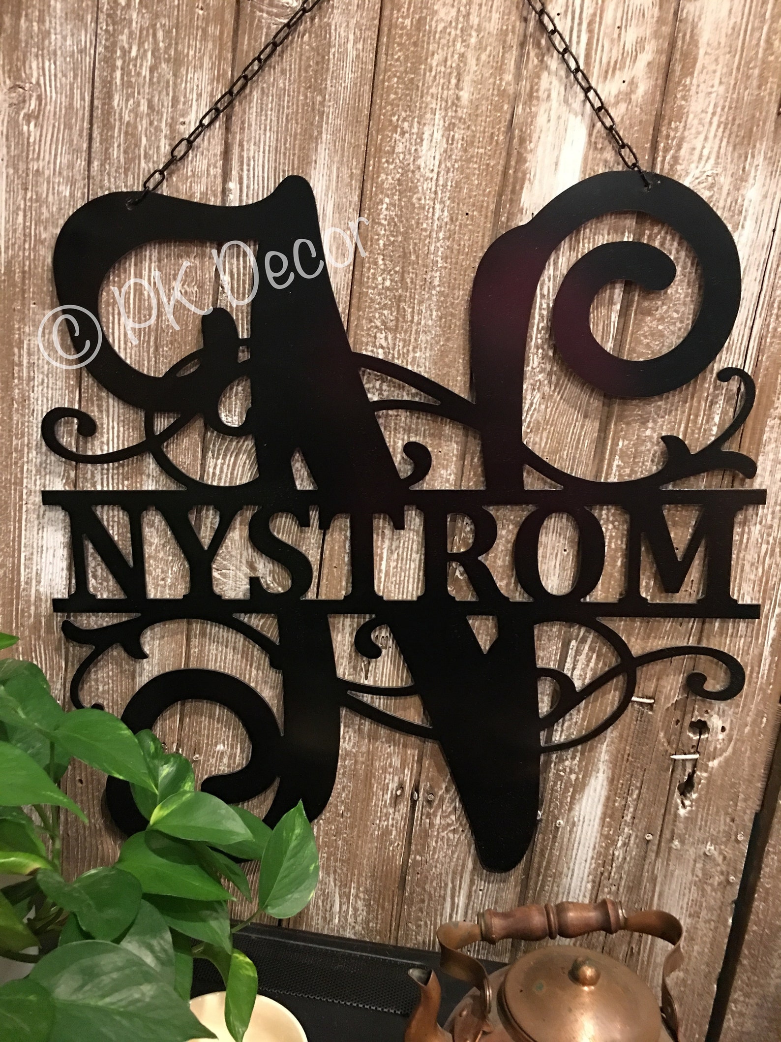Our Dcor is made from a unique material we call Metal ACM. ACM is an Aluminum Composite Material and is WEATHER PROOF AND LIGHTWEIGHT. IT IS NOT HEAVY STEEL METAL! With our options for hangers/holes, we make it easy to decorate your home (inside or outside) with our Metal ACM Dcor! Our customers have used our dcor on their mantels, patios, gates, fences, barns, siding walls, garages, foyers, etc. This material is used for business signage and perfect for outdoors and direct weather. Choose from a variety of colors. You can also change the color with Rustoleum spray paint. Although from a distance the dcor looks similar to steel signs, PLEASE NOTE: This is NOT heavy steel metal and will not rust. See our other listings for a variety of sizes 12, 14, 18, 24.