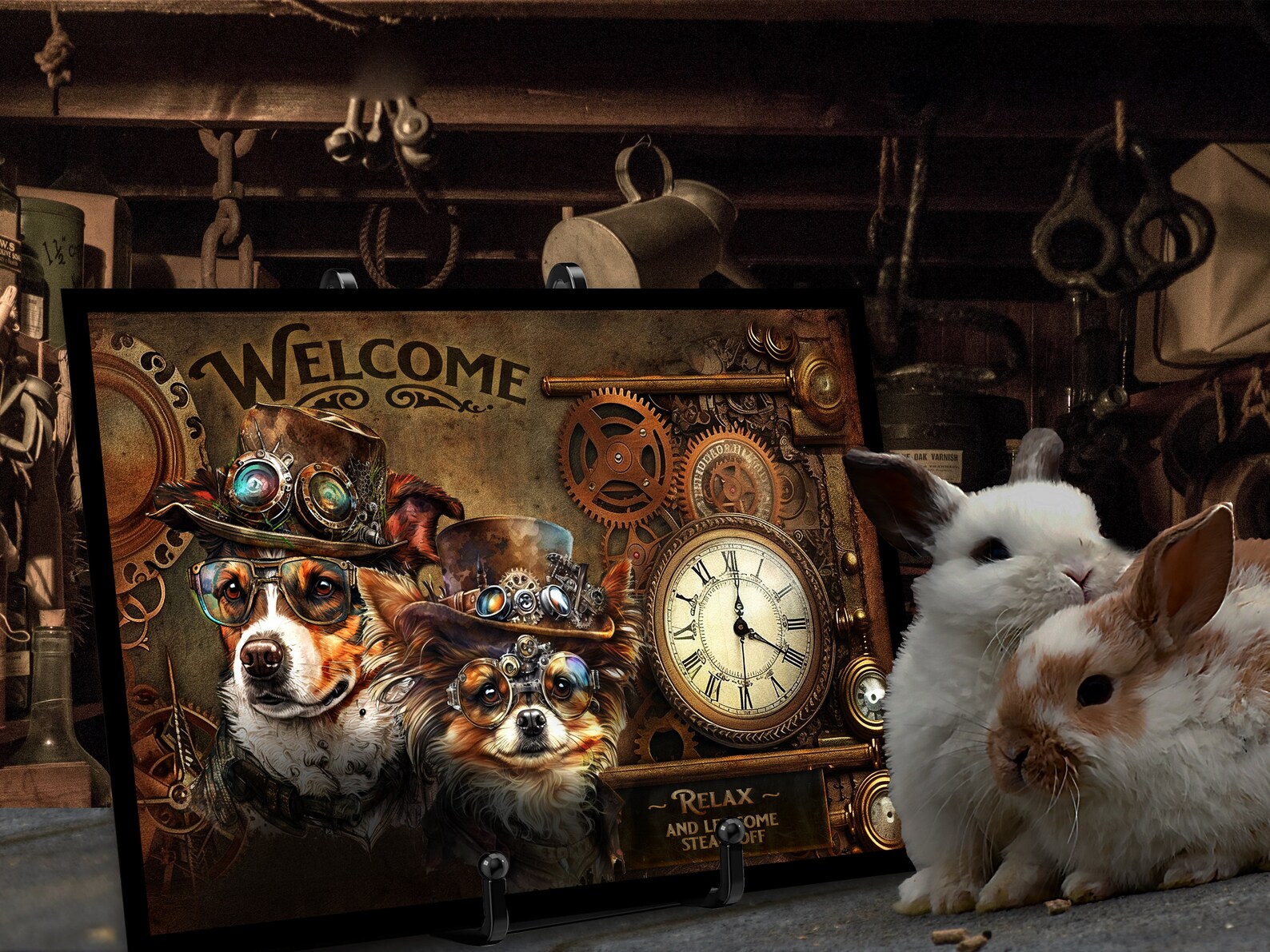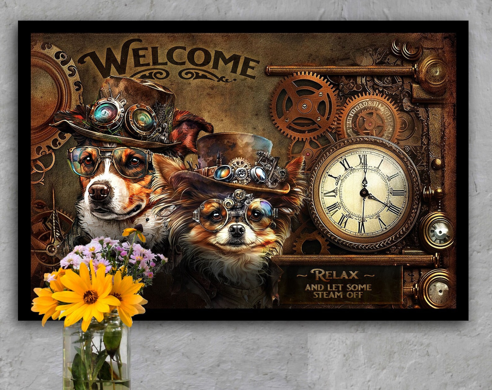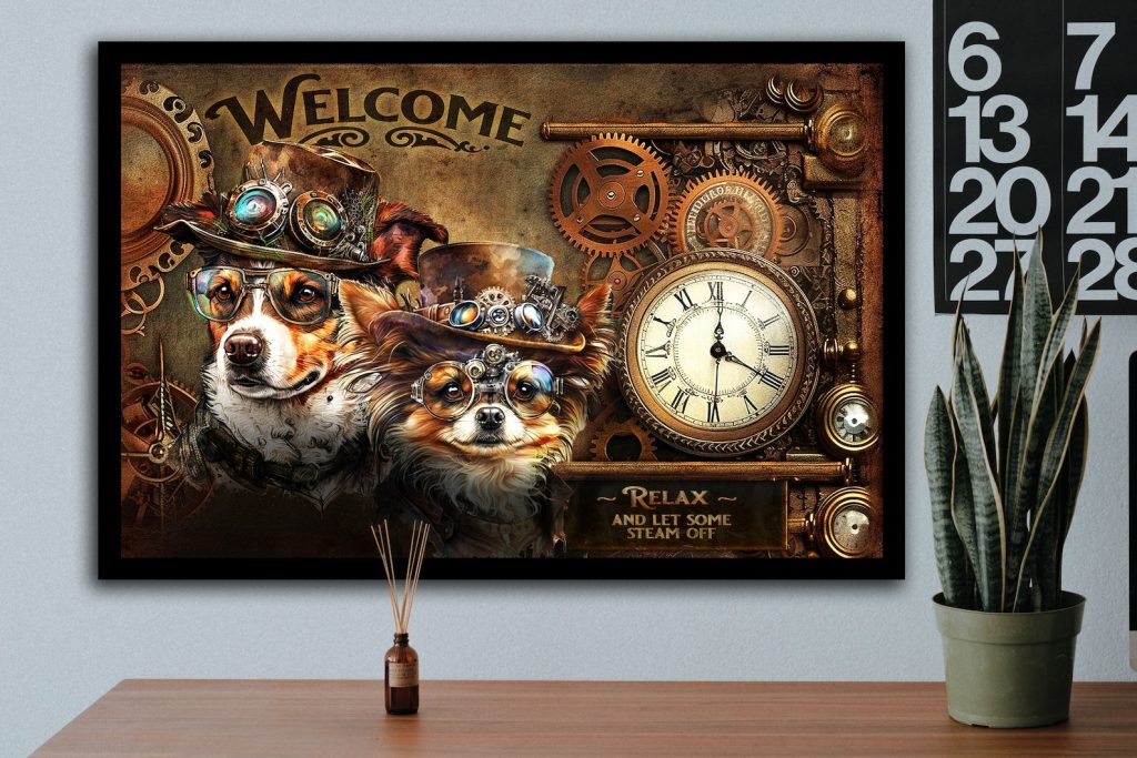 Steampunk Puppy Metal Wall Art
