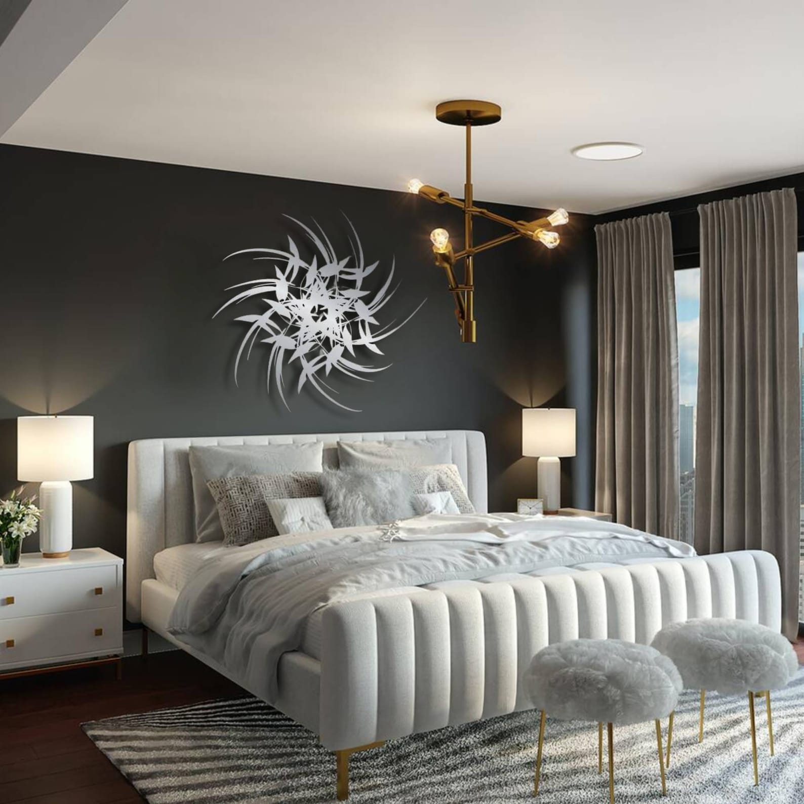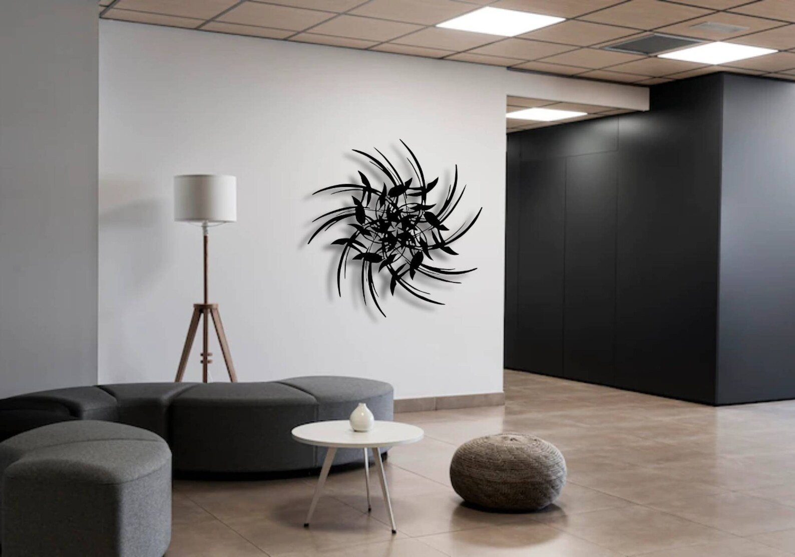 This metal wall hanging is designed for your modern home decorating. As distinctive point from other metal wall signs our 2d dimension looking metal wall decors are unique home decor products.As the metal wall art stands 2 cm away from the wall you hang on,you will have natural sunshine or lighting passing through.
