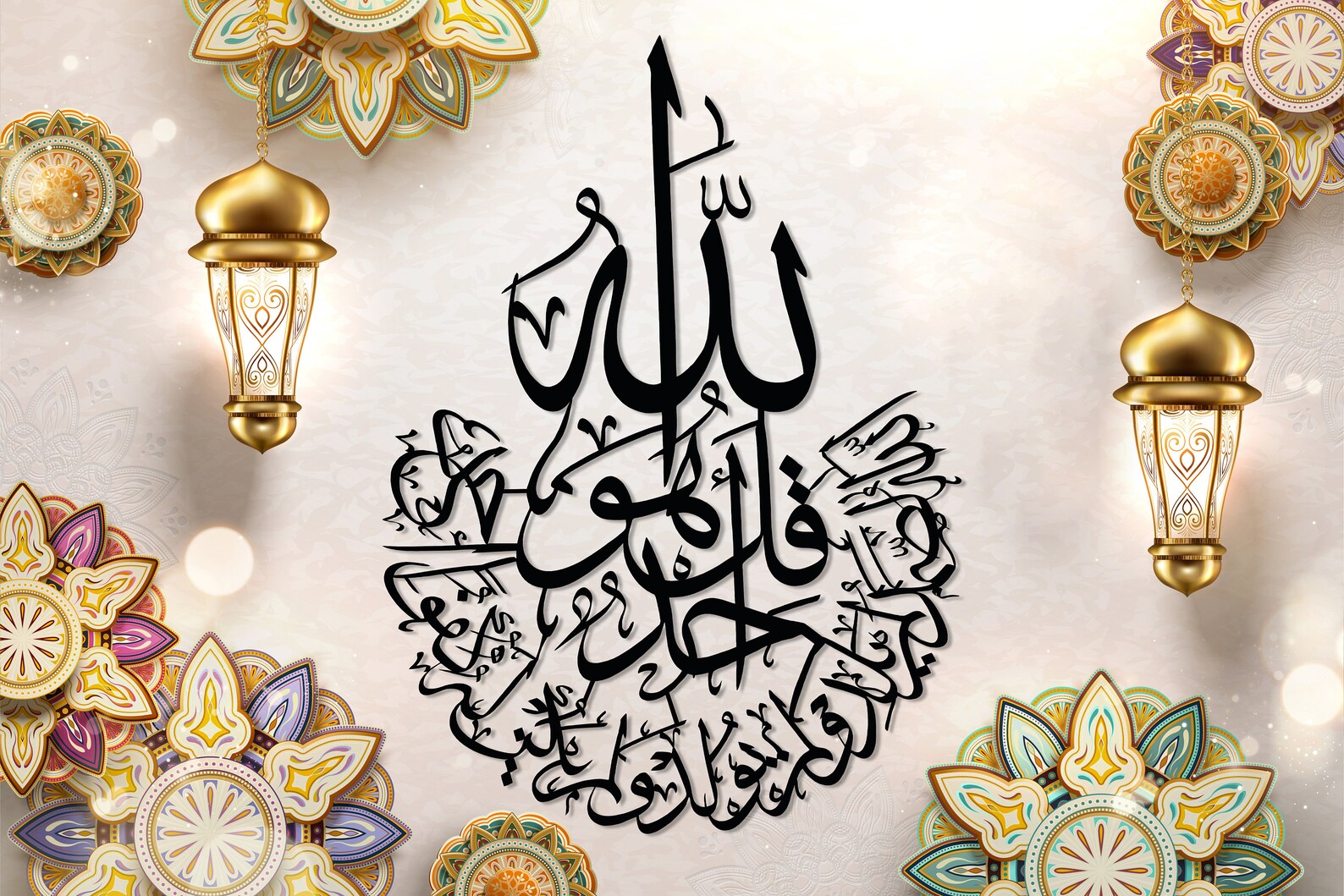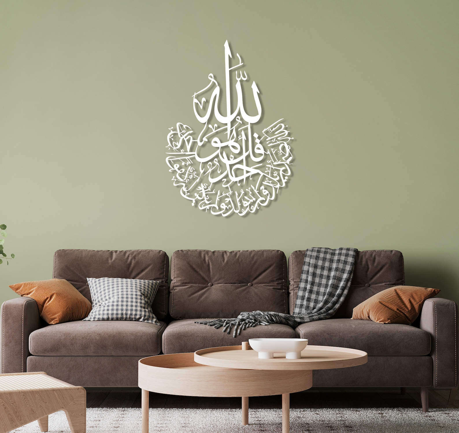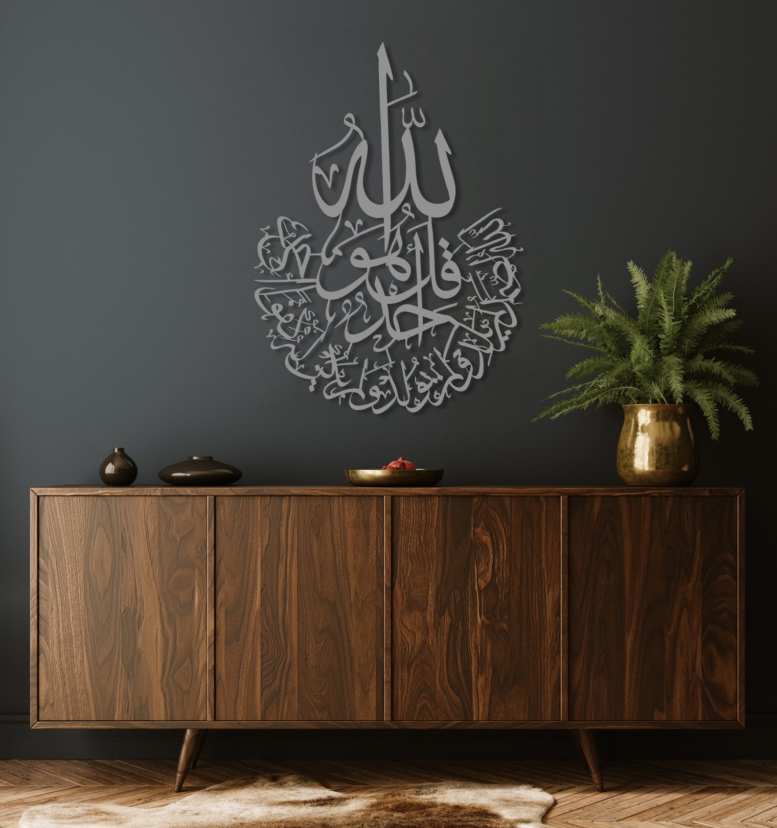 Metal Surah Al Ikhlas Islamic Wall Art, Quran Surah Sign, Arabic Wall Decor, Muslim Home Decor, Islamic Calligraphy, Surah Ikhlas Wall Art